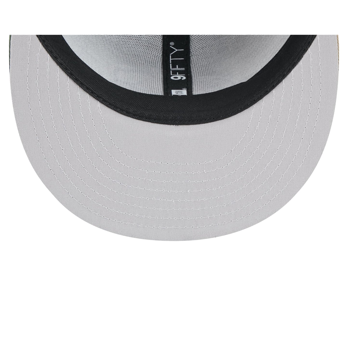 The Colorado Avalanche Camo 9FIFTY Trucker features an embroidered Avalanche logo at the front panels with a team tag on a snapback closure at a mesh rear and a gray undervisor.