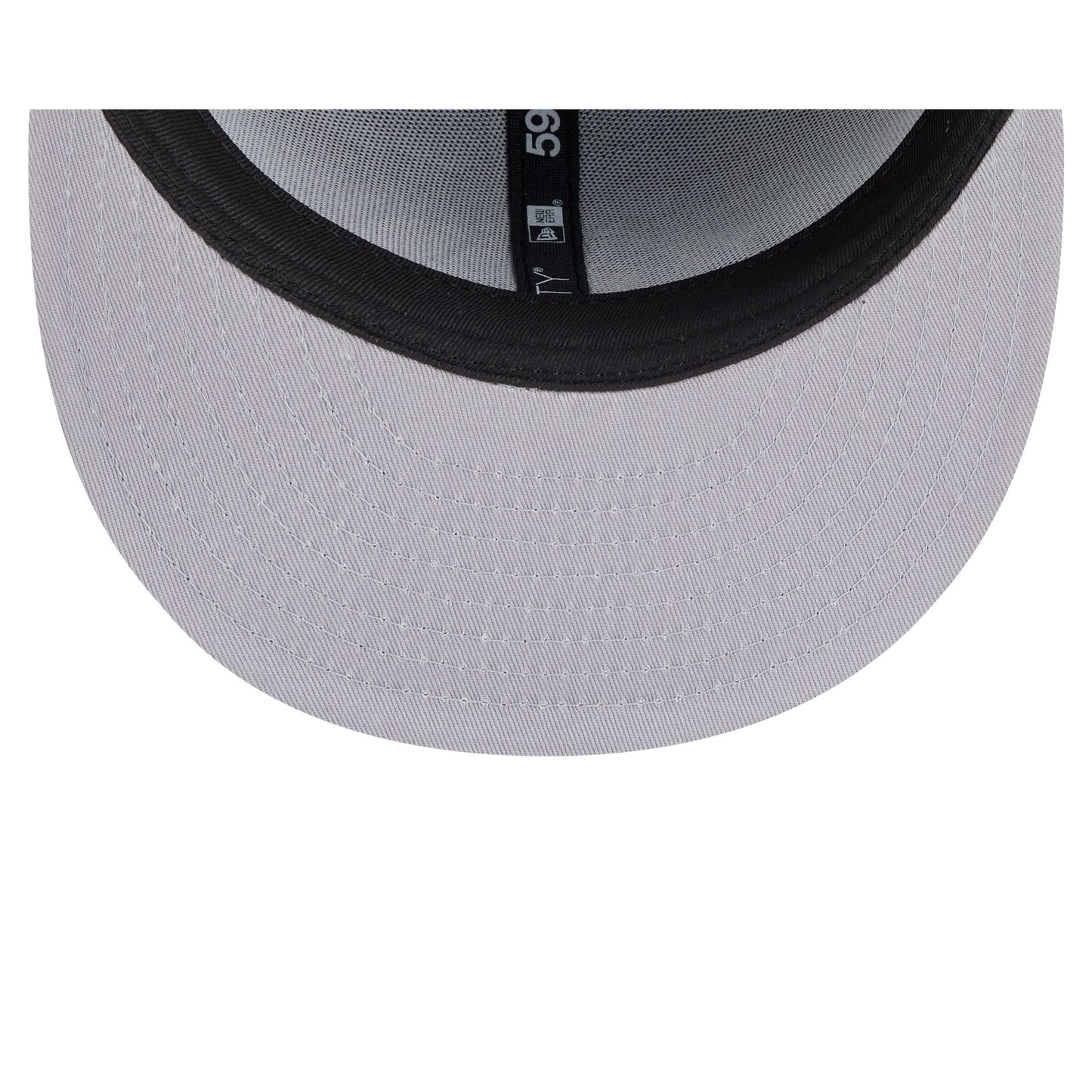 The Colorado Avalanche Classic Dog Ear 59FIFTY Fitted Cap features an embroidered Avalanche logo at the front panels with sherpa ear covers with a snap button closure. Additional details include the NHL Shield logo at the rear and a gray undervisor.