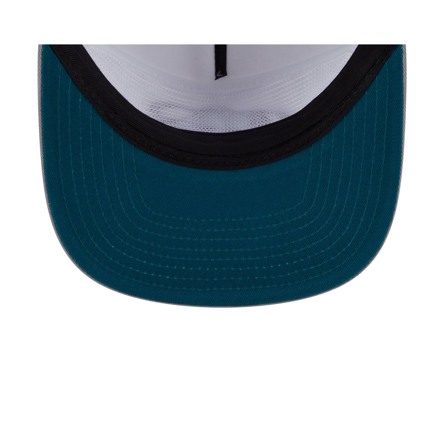 The Colorado Avalanche Optic White Golfer features an embroidered Avalanche logo at the front panels with a matching team wordmark at the right-wear side. Additional details include a snapback closure at the rear and a teal undervisor.