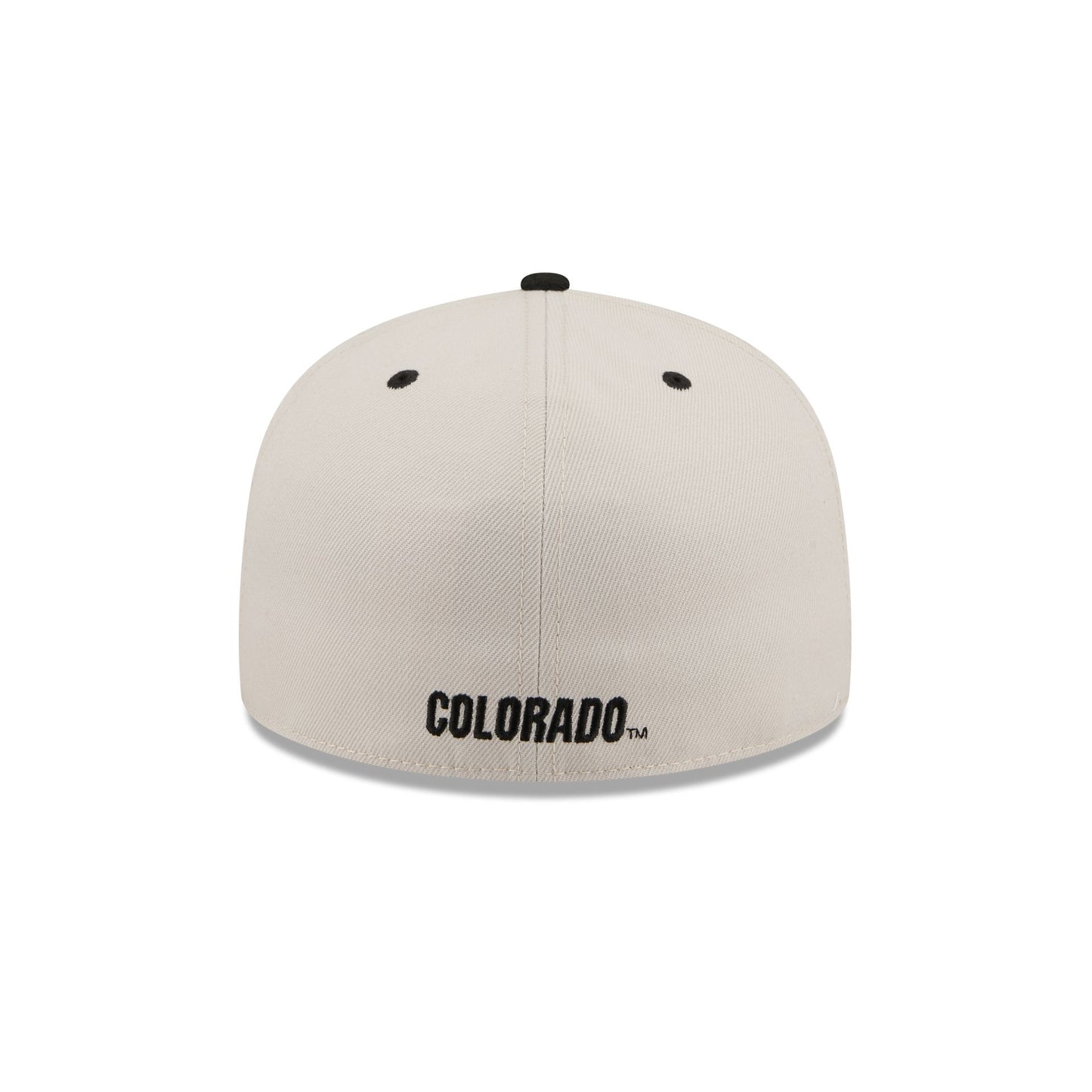 The Colorado Buffaloes Collegiate Two-Tone Chrome 59FIFTY Fitted Cap features an embroidered Buffaloes logo at the front panels with a team wordmark at the rear. Additional details include an alternate team logo patch at the right-wear side with a black visor and a gray undervisor.