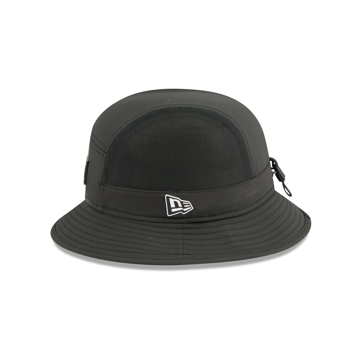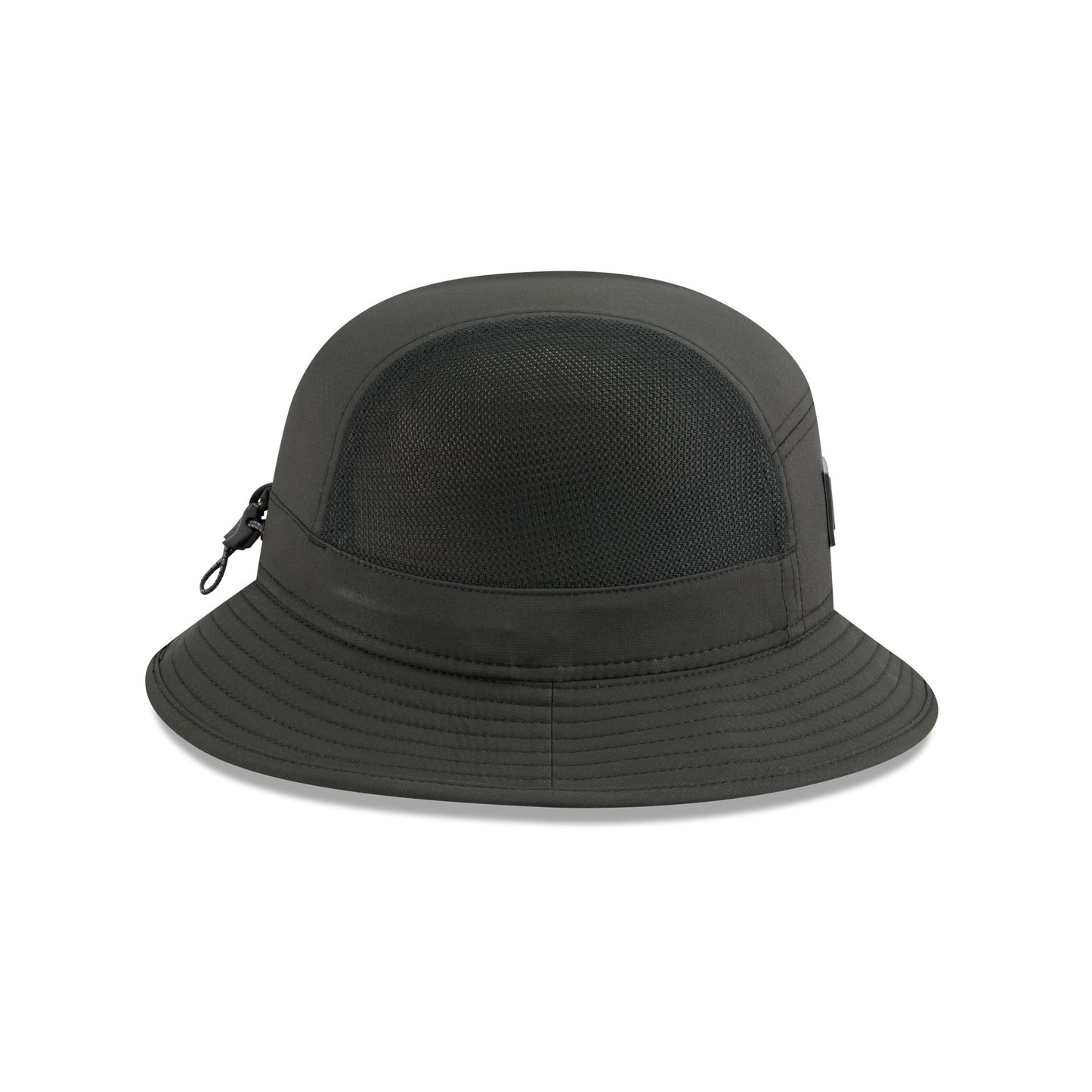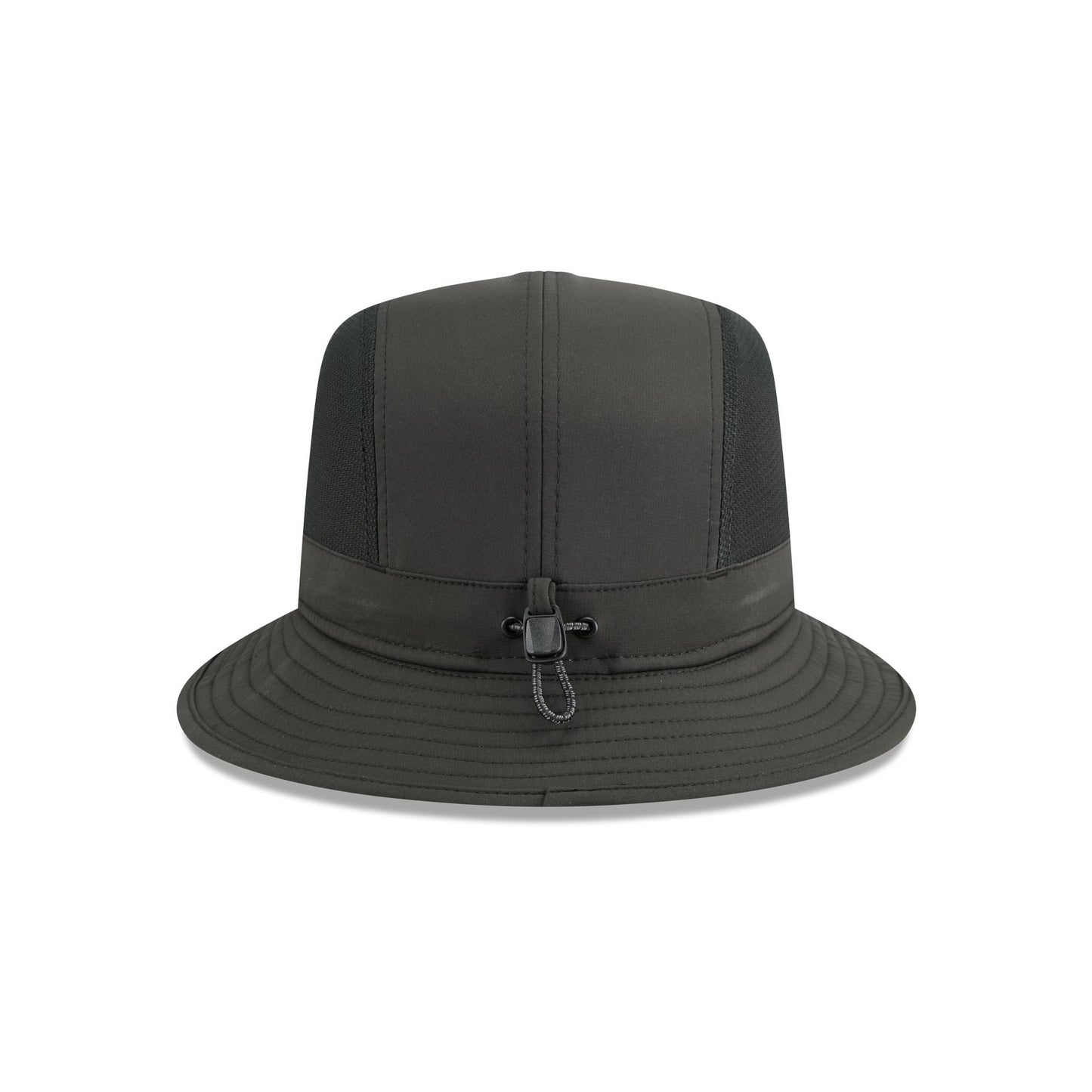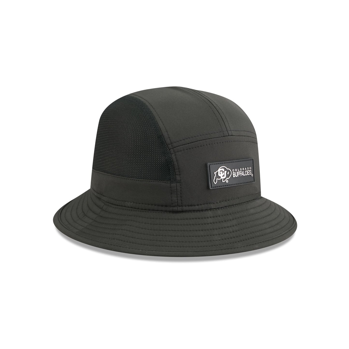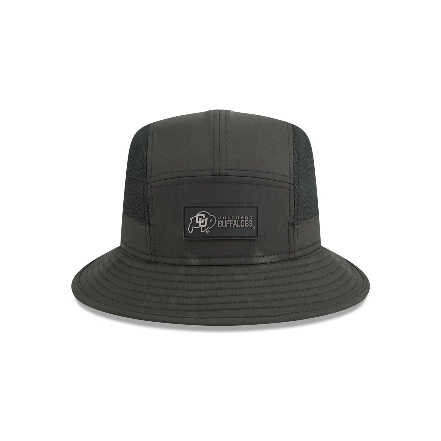 The Colorado Buffaloes Hot Weather Stretch Bucket features a sewn-down silicone Buffaloes logo patch at the front with breathable mesh side panels and an adjustable reflective drawstring at the rear.
