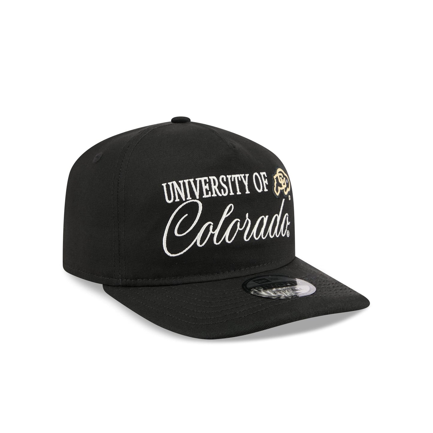 The Colorado Buffaloes Script 19TWENTY Snapback features an embroidered Buffaloes script and logo patch at the front panel with a snapback closure at the rear and a green undervisor.