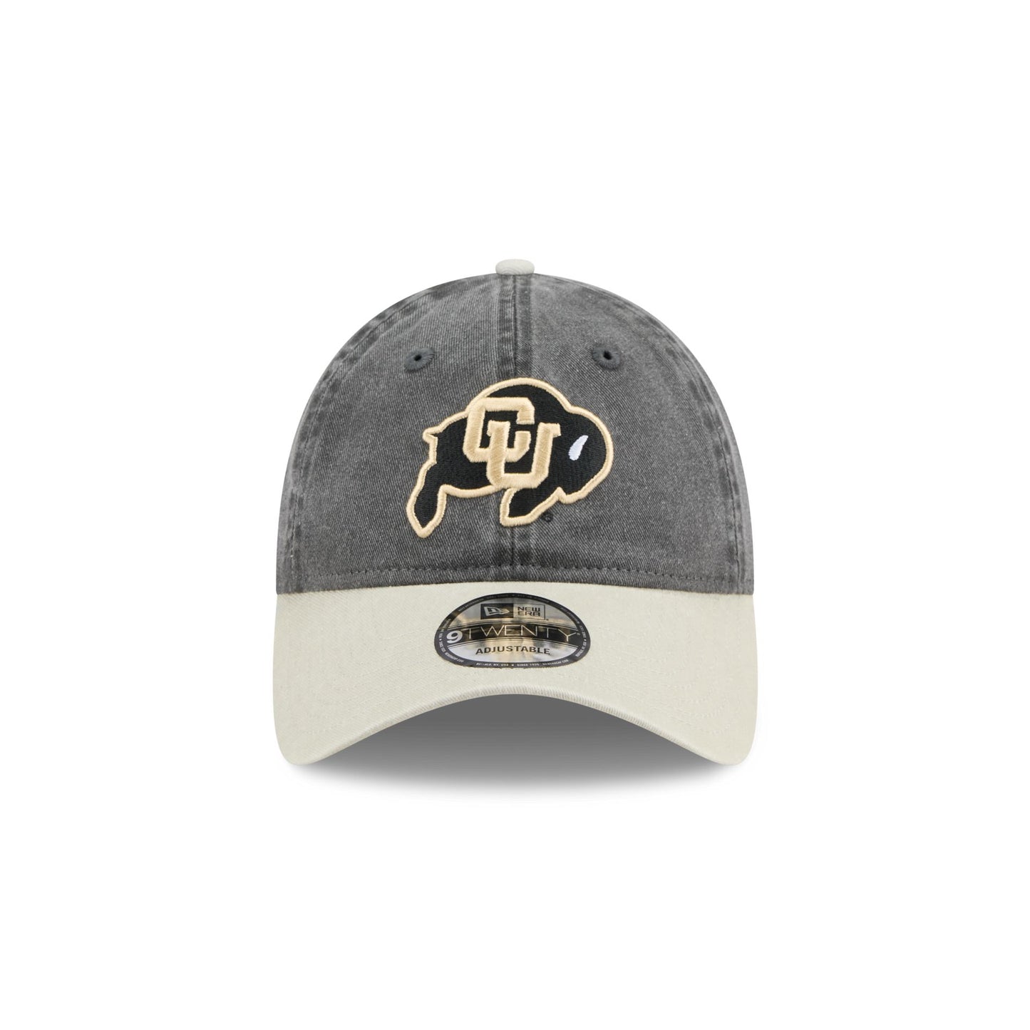 The Colorado Buffaloes Select 9TWENTY Adjustable Cap features an embroidered Buffaloes logo at the front panels with a washed fabrication throughout. Additional details include a team wordmark above an adjustable D-Ring closure at the rear.
