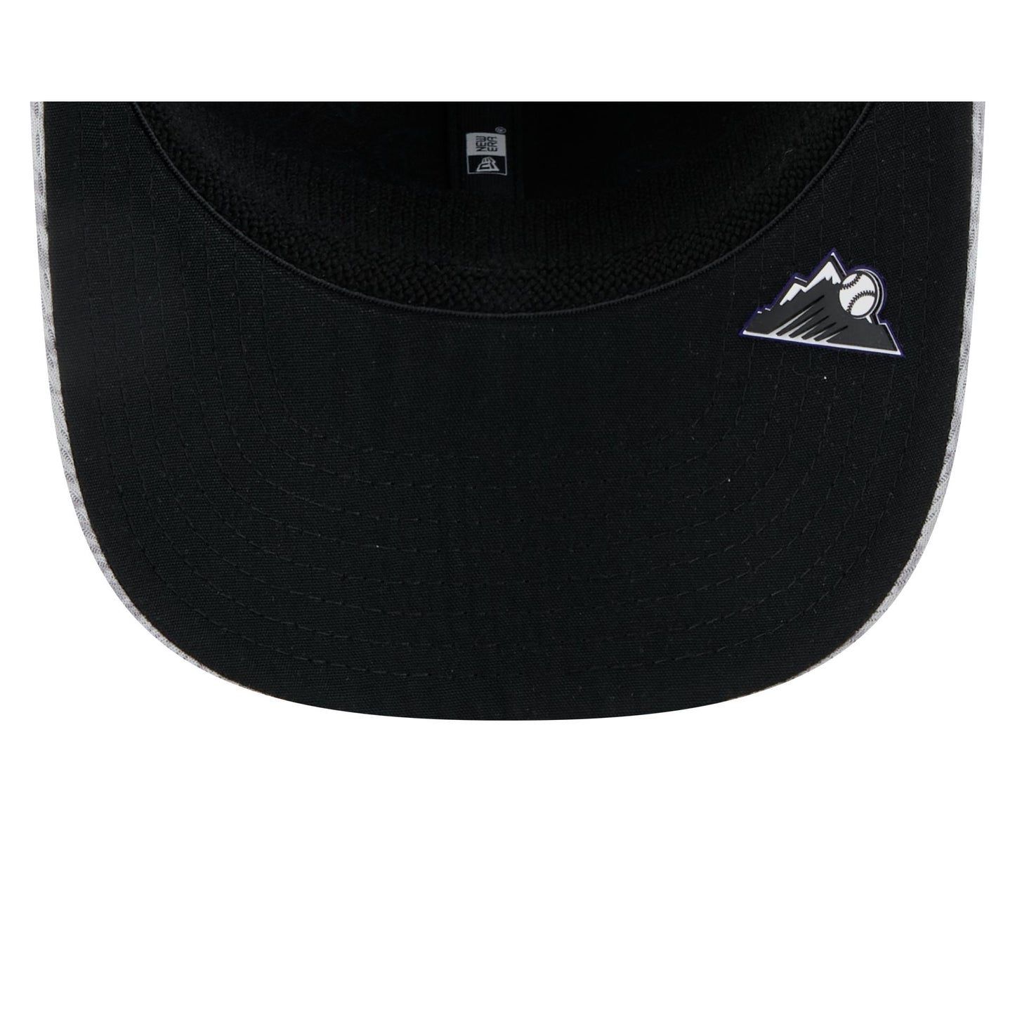 The Colorado Rockies 2025 Clubhouse Gray 9SEVENTY Stretch-Snap Cap features an embroidered Rockies logo at the front panels with a matching MLB Batterman logo above a snapback closure at the rear and a dashmark mesh fabrication throughout. Additional details include a silicone team tag on the right-wear side and team logo on the undervisor.
