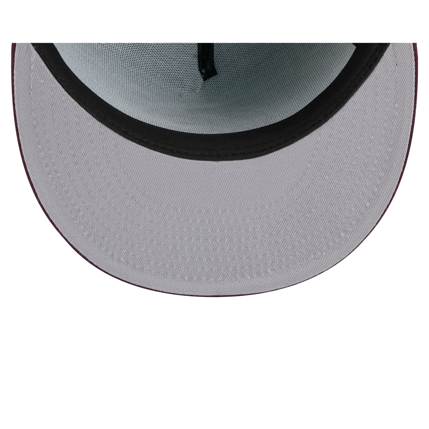 The Colorado Rockies Beach Kiss Blue 59FIFTY A-Frame Fitted Cap features an embroidered Rockies logo at the front panels with a matching MLB Batterman logo at the rear. Additional details include a 1998 All-Star Game patch at the right-wear side and a gray undervisor.