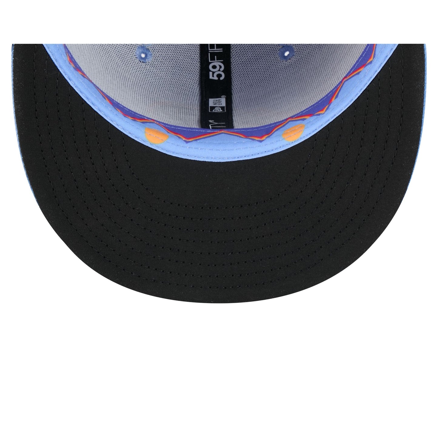 The Colorado Rockies 2026 City Connect 59FIFTY Fitted Cap features an embroidered Rockies logo at the front panels with a matching MLB Batterman logo at the rear and a black undervisor.