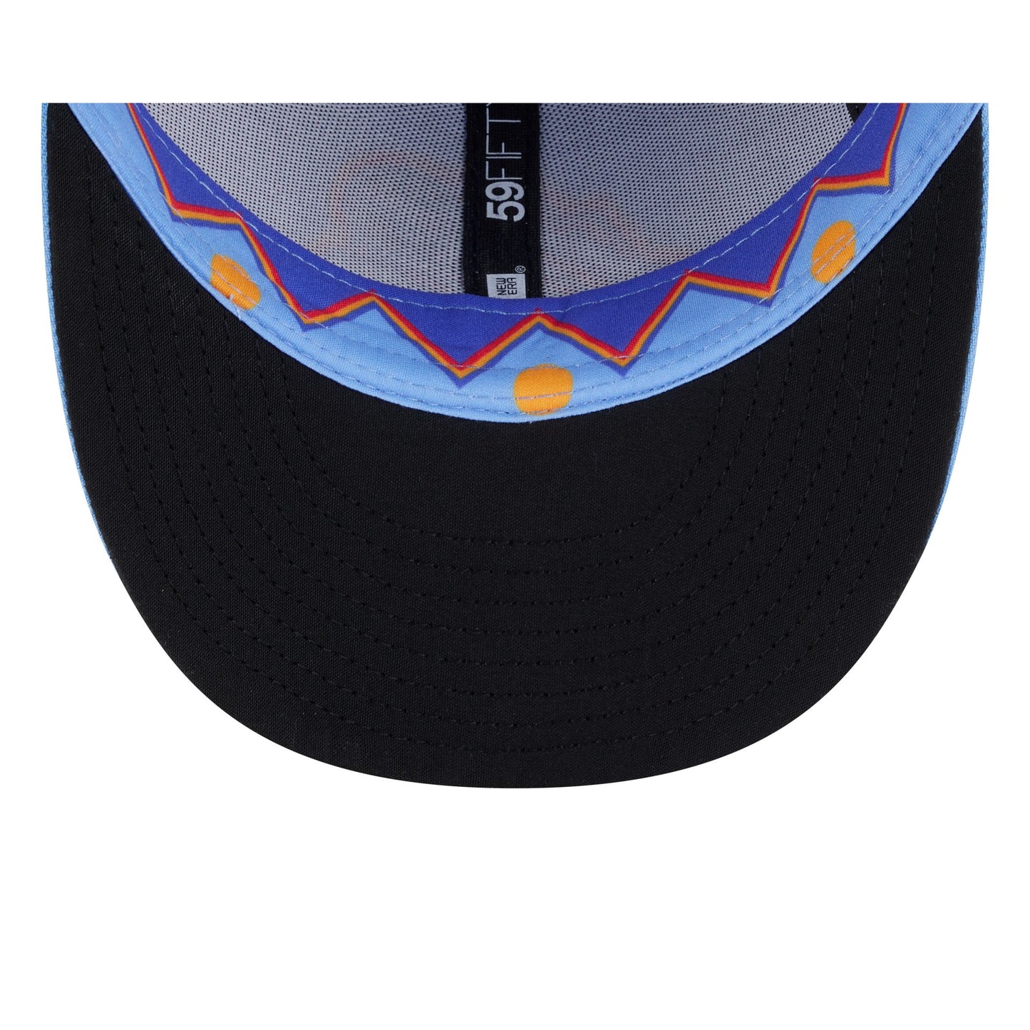 The Colorado Rockies City Connect Low Profile 59FIFTY Fitted Cap features an embroidered Rockies logo at the front panels with a matching MLB Batterman logo at the rear and print sweatband.