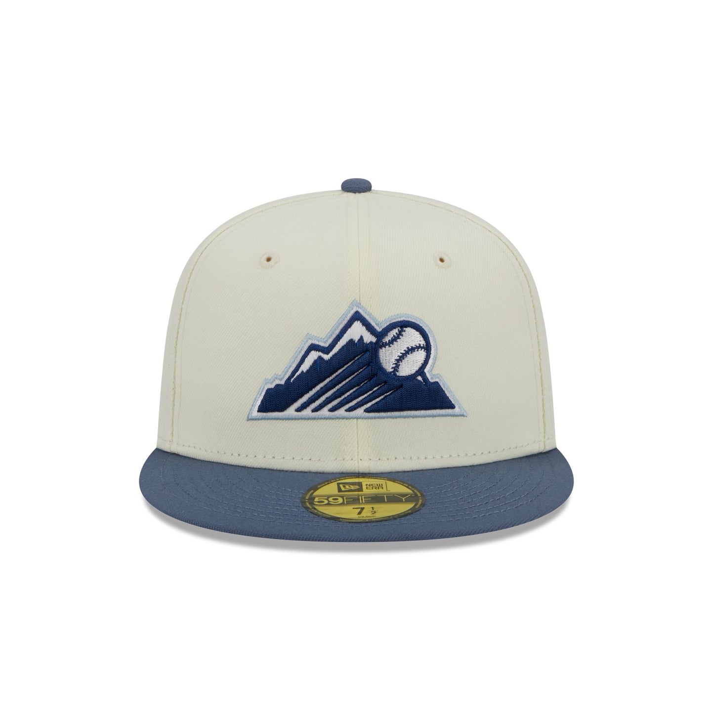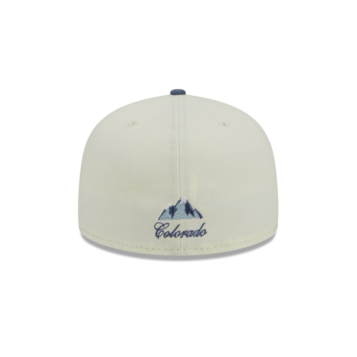 The Colorado Rockies City Icon 59FIFTY Fitted Cap features an embroidered Rockies logo at the front panels with a Coors Field patch at the right-wear side. Additional details include a city-inspired design at the rear and a gray undervisor.