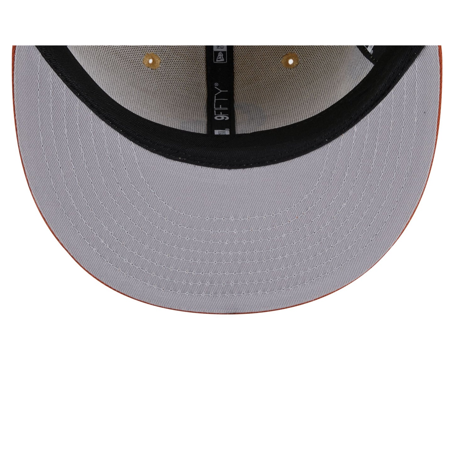 The Colorado Rockies Fall Landscape 9FIFTY Snapback features an embroidered Rockies logo at the front panels with a fall landscape at the right-wear side, a gray undervisor, and a snapback closure at the rear.