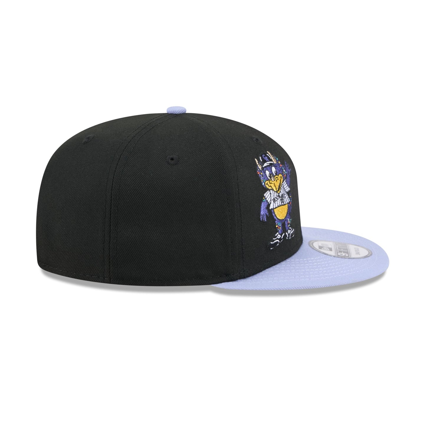 The Colorado Rockies Generation Mascots 9FIFTY Snapback features an embroidered Rockies baby and adult mascot at the front panels. Additional details include a snapback closure at the rear and a gray undervisor.