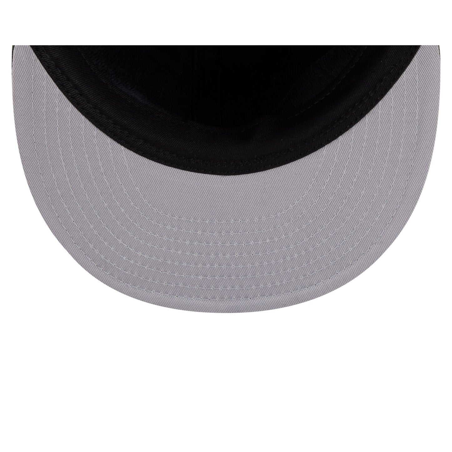 The Colorado Rockies Three Looms Cotton Twill Camo Retro Crown Dog Ear 59FIFTY Fitted features an embroidered Rockies logo at the front panels with a matching MLB Batterman logo at the rear. Additional details include fleece camo lined ear covers with a snap button closure and a gray undervisor.