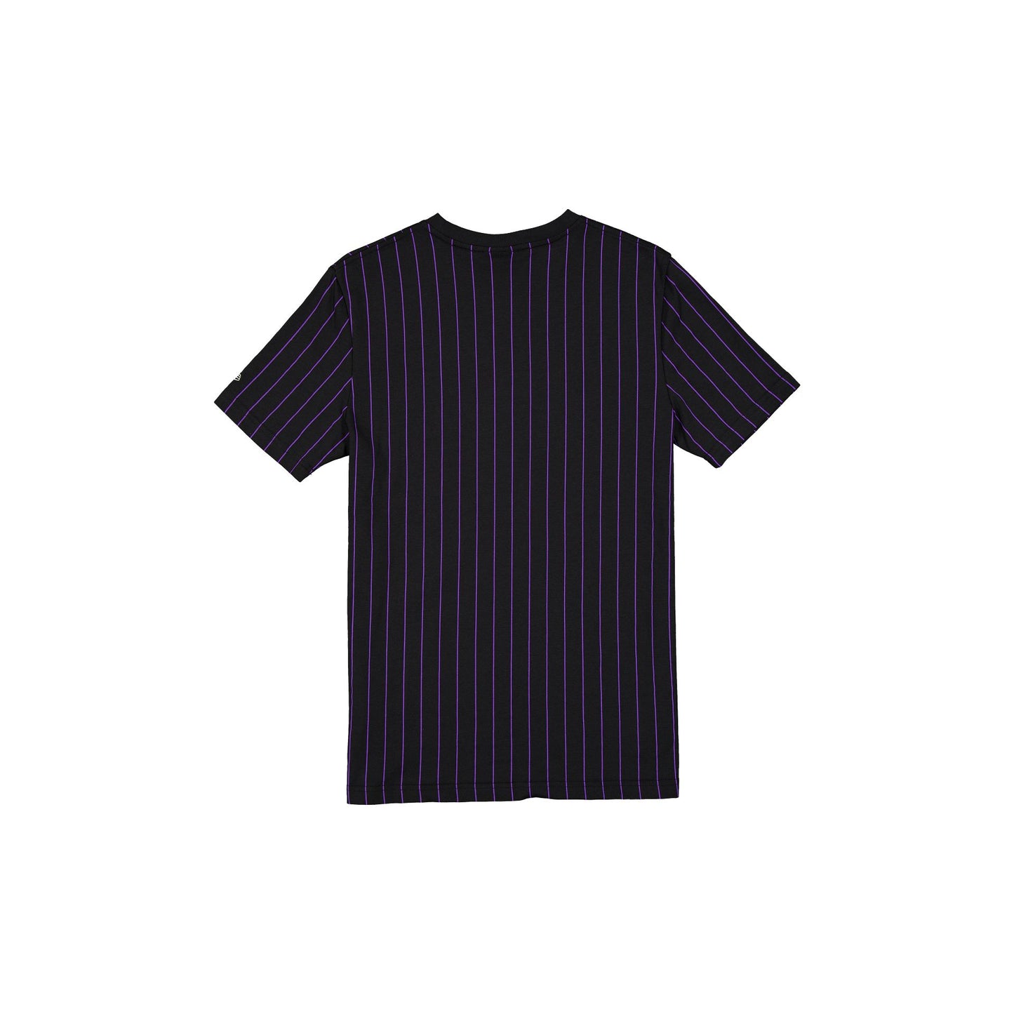 The Colorado Rockies Throwback Pinstripe T-Shirt features an embroidered Rockies logo and wordmark at the front with a New Era jock tag at the left hip.