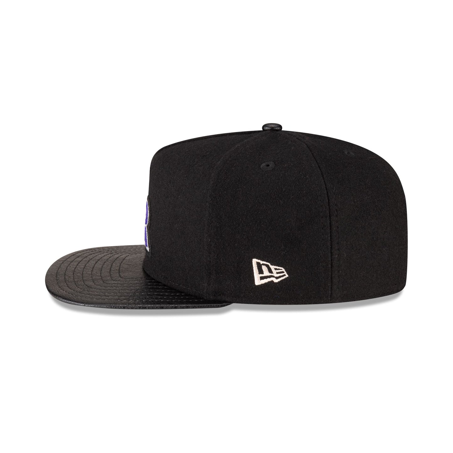 The Colorado Rockies Wool Letterman 9FIFTY A-Frame Snapback features an embroidered loop Rockies Cooperstown logo at the front panels with a team script and establishment date at the right-wear side. Additional details include a wool fabrication throughout, a snapback closure at the rear, and a gray undervisor.