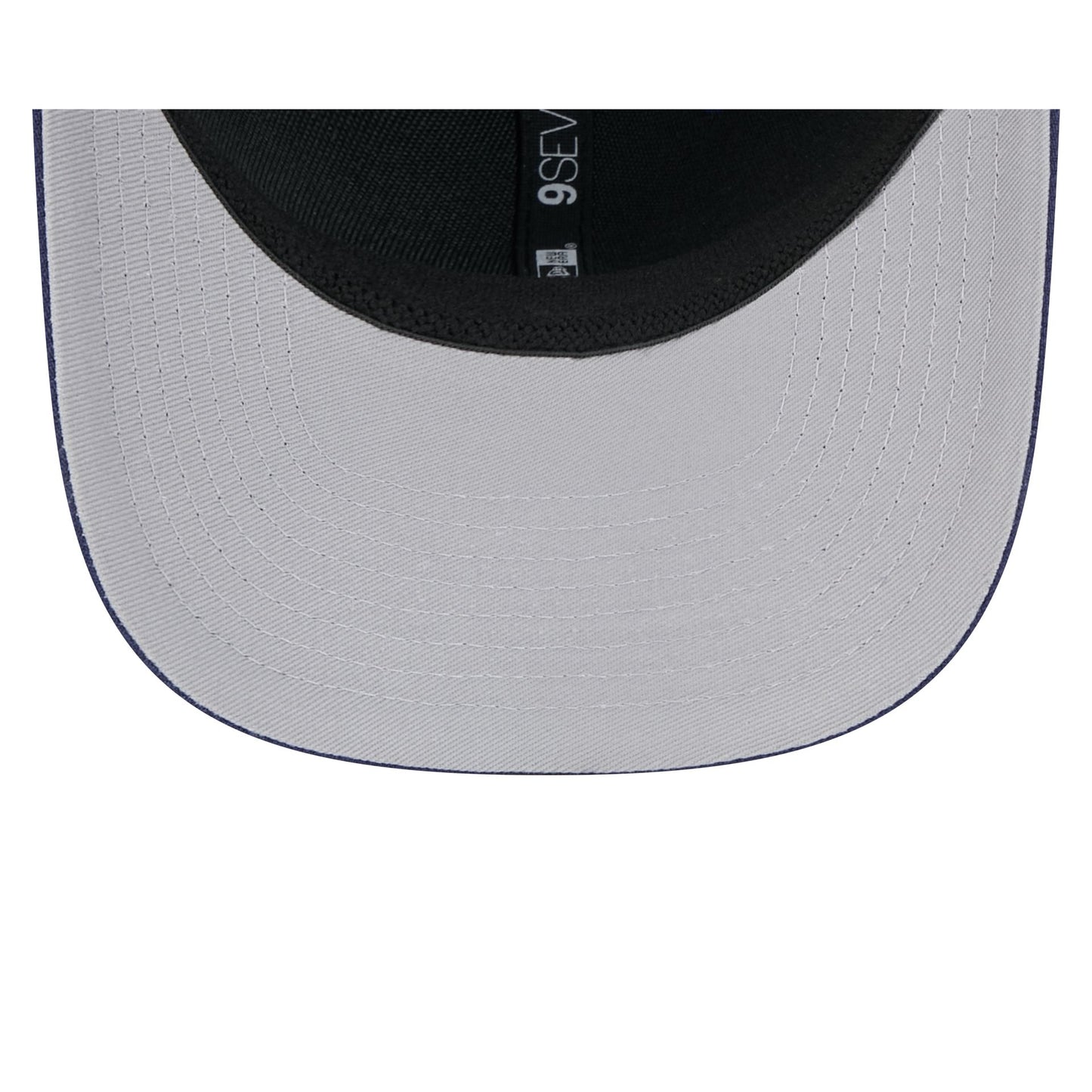 The Columbus Blue Jackets 9SEVENTY Stretch-Snap features an embroidered Blue Jackets logo at the front panels with a matching woven team tag at an adjustable snapback closure at the rear and a gray undervisor.