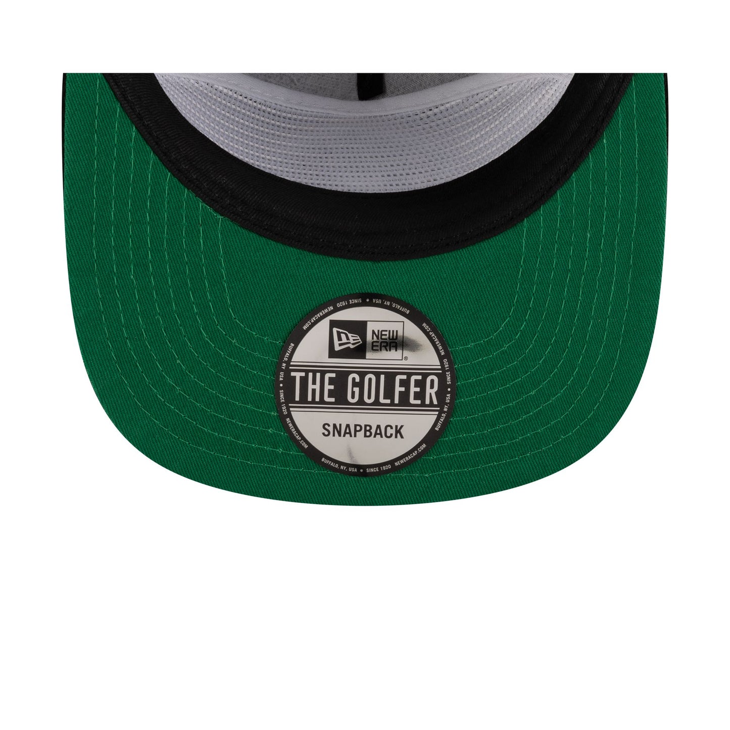 The Columbus Clingstones Black Corduroy Golfer features an embroidered Clingstones logo at the front panels against a corduroy fabrication. Additional details include a snapback closure at the rear and a green undervisor.
