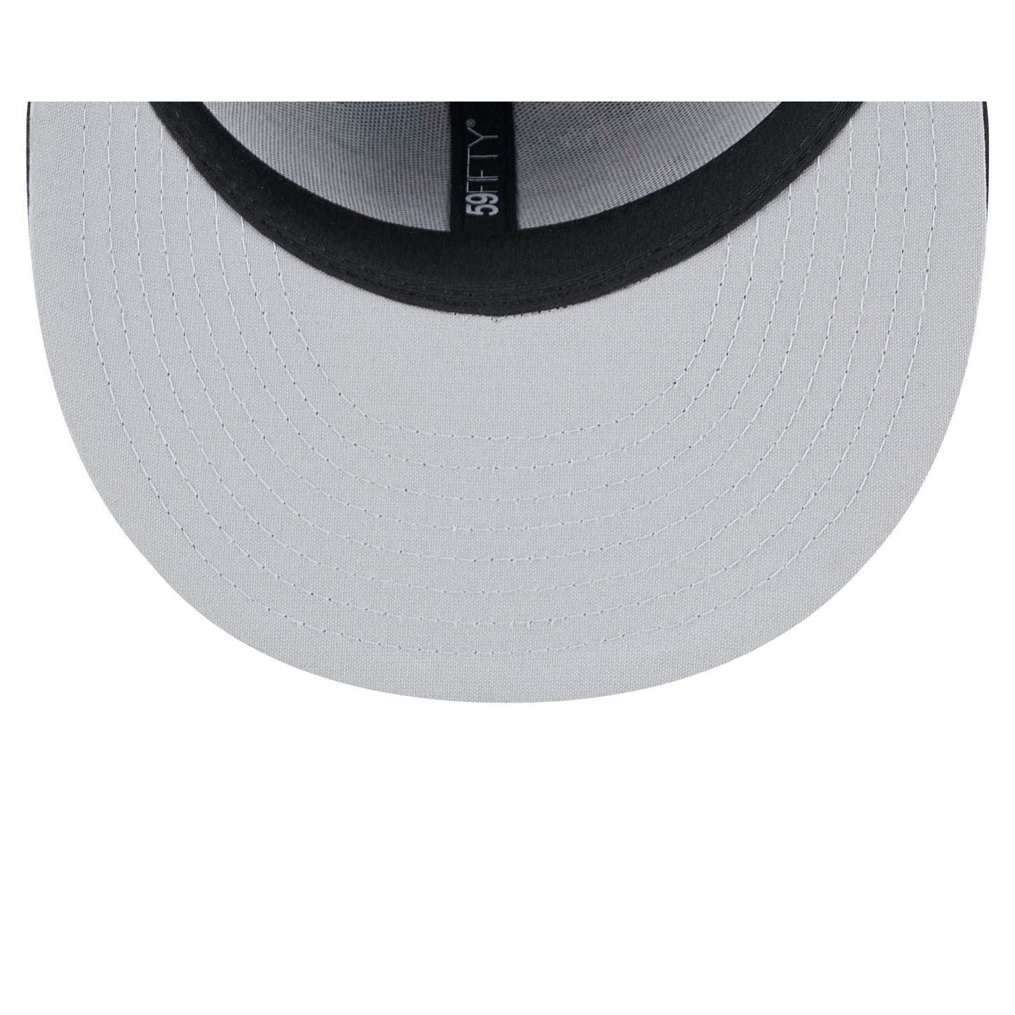 The Columbus Clingstones Road 59FIFTY Fitted Cap features an embroidered Clingstones logo at the front panels with a matching MiLB Batterman logo at the rear and a gray undervisor.