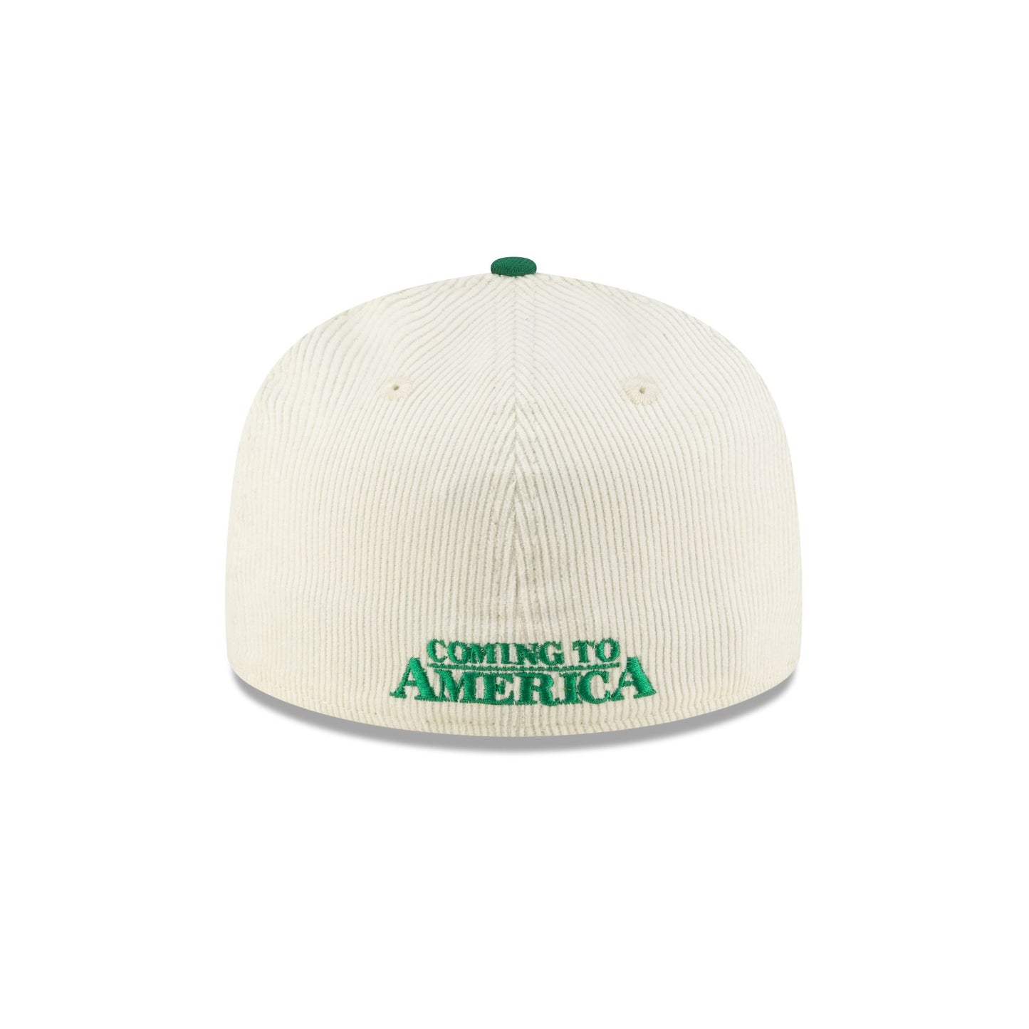 The Coming to America Air Zamunda Corduroy 59FIFTY Fitted Cap features an embroidered Coming to America Air Zamunda graphic at the front panels with a corduroy fabric throughout. Additional details include a Coming to America wordmark at the rear and a gray undervisor.