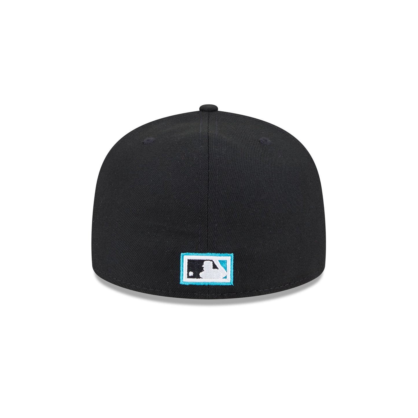 The Compound x Miami Marlins 59FIFTY Fitted Cap features an embroidered Marlins logo at the front panels with a matching MLB Batterman logo at the rear, a Compound wordmark at the right-wear side, and a gray undervisor.