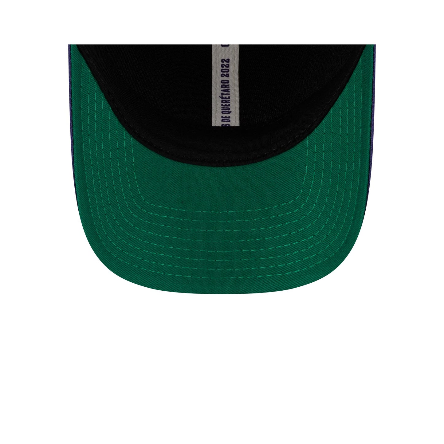 The Conspiradores de Querétaro Retro 9FORTY M-Crown Snapback features an embroidered Conspiradores retro logo at the front panels with a 100th Anniversary LMB logo above an adjustable snapback closure at the rear.