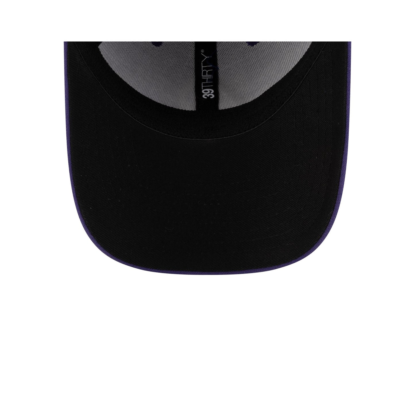 The Conspiradores de Querétaro LMB 100th Anniversary Alt Purple 39THIRTY Stretch Fit Cap features an embroidered Conspiradores alternate logo at the front panels with a LMB 100th Anniversary patch at the rear and black undervisor.