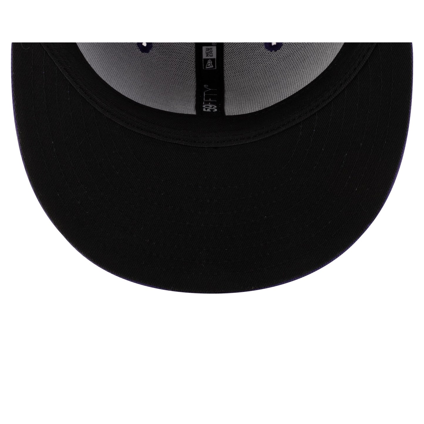 The Conspiradores de Querétaro LMB 100th Anniversary Alt Purple 59FIFTY Fitted Cap features an embroidered Conspiradores alternate logo at the front panels with a LMB 100th Anniversary patch at the rear and black undervisor.