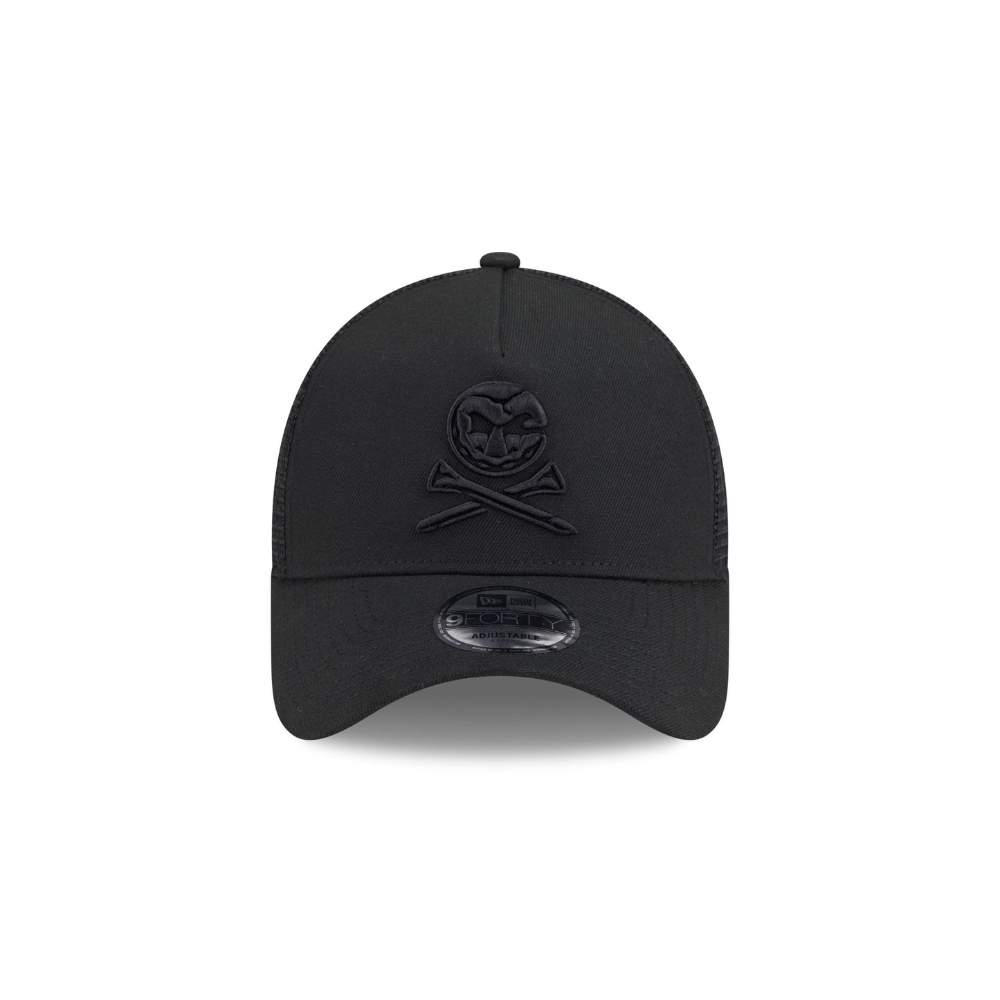The Crushers GC All Black 9FORTY A-Frame Trucker features an embroidered Crushers GC logo at the front panels with an adjustable snapback closure at a mesh rear.