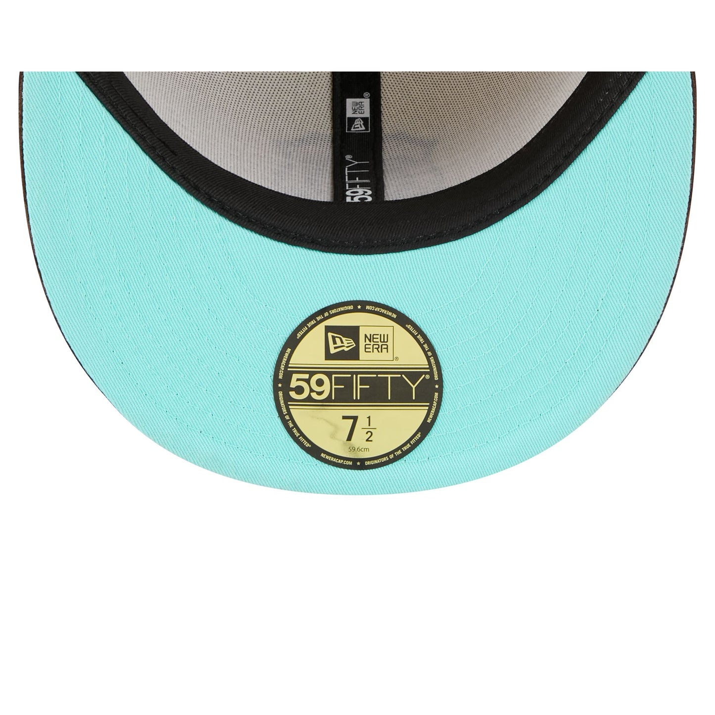 The Cruz Azul Tan 59FIFTY Fitted Cap features an embroidered Cruz Azul logo at the front panels with a matching team wordmark at the rear and a color block crown. Additional details include a brown corduroy visor with a blue undervisor.