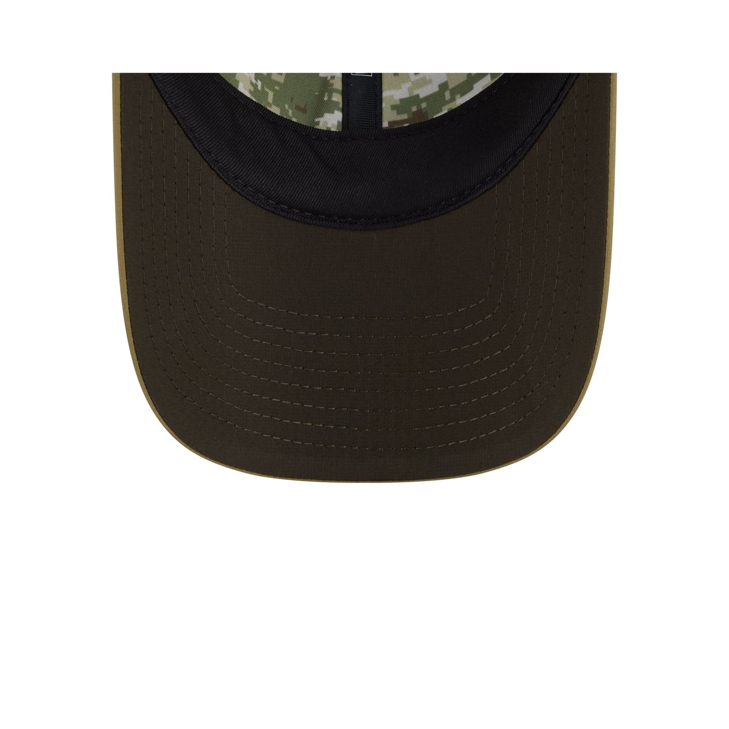 The Dallas Cowboys 2025 Salute to Service Women's Open Back Ponytail Cap features an embroidered Cowboys logo at the front panels with the official NFL Salute to Service patch at the right-wear side, a digi camo interior fabrication, and a dark green undervisor. Additional details include an adjustable strap and open panel at the rear to accommodate any hairstyle.