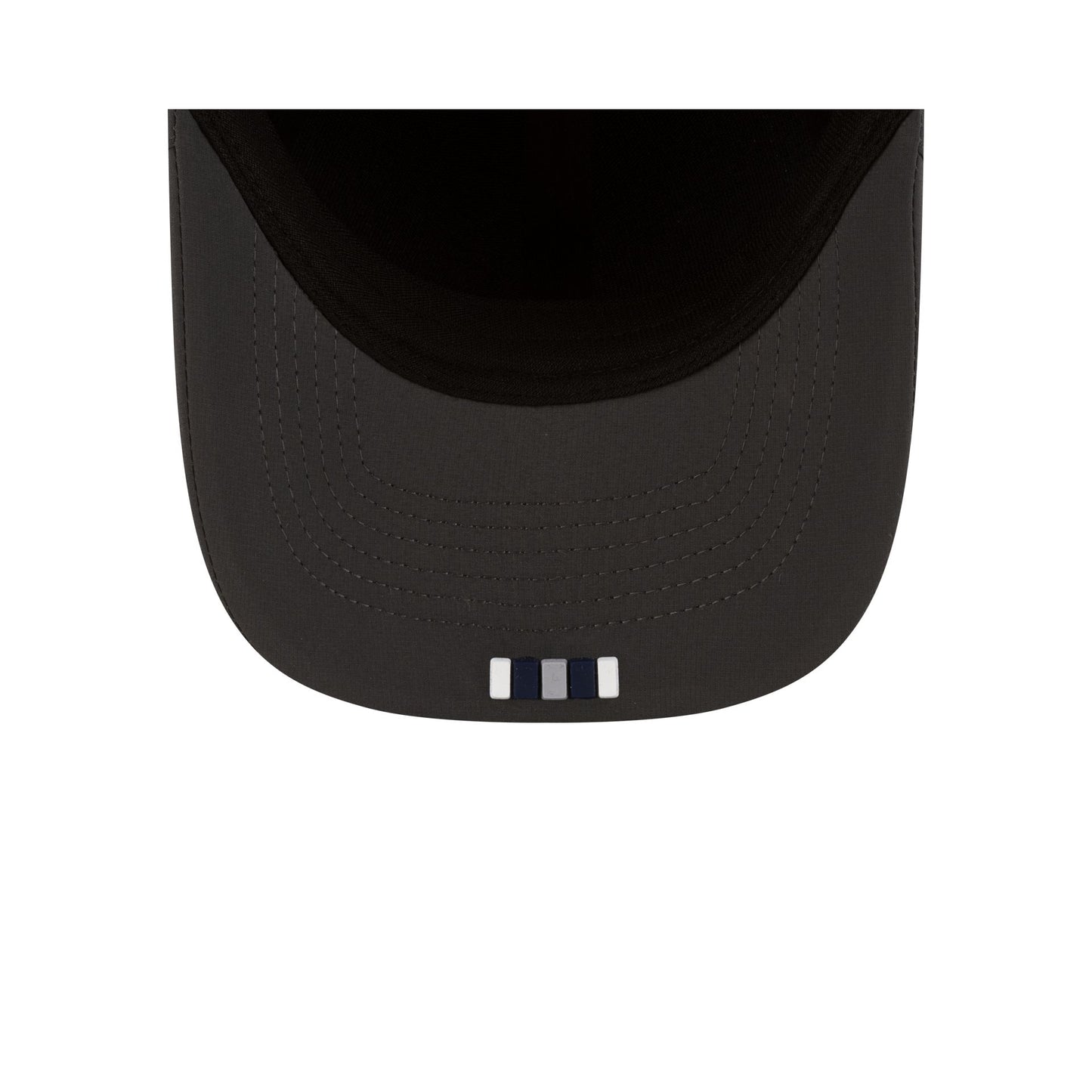 The Dallas Cowboys 2025 Sideline Cold Weather Steel Clouds 9FORTY M-Crown Snapback features a sewn-down silicone Cowboys logo patch at the front panels with a water-repellent quill tech fabrication throughout and a quick-dry cushioned sweatband to absorb moisture. Additional details include the Official NFL Shield logo to the right of a soft silicone snapback closure at the rear. The crown has bonded seams to trap warmth and the undervisor is accented with a silicone transfer in the team’s colors.
