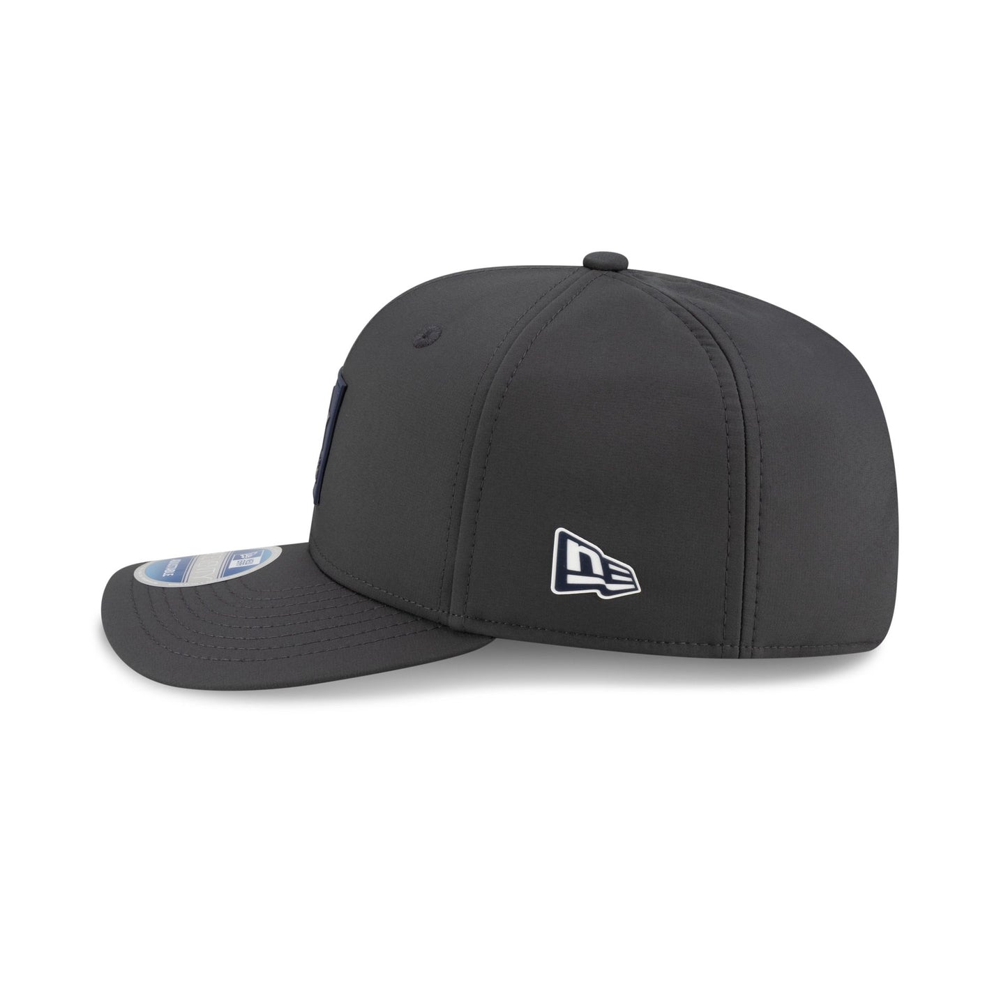 The Dallas Cowboys 2025 Sideline Cold Weather Steel Clouds 9SEVENTY Stretch-Snap features a sewn-down silicone Cowboys logo patch at the front panels with a water-repellent quill tech fabrication throughout and an insulated crown with a quick-dry cushioned sweatband. Additional details include the Official NFL Shield logo to the right of a soft silicone snapback closure at the rear. The undervisor is accented with a silicone transfer in the team’s colors.