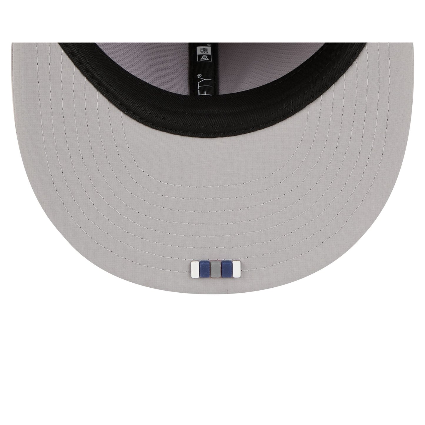 The Dallas Cowboys 2025 Sideline Hot Weather Gray 59FIFTY Fitted Cap features a sewn-down silicone Cowboys logo patch at the front panels with a matching Official NFL Shield logo at the rear. The cap has a water-repellent quill tech fabrication throughout, with a quick-dry cushioned sweatband to absorb moisture. The undervisor is accented with a silicone transfer in the team’s colors.