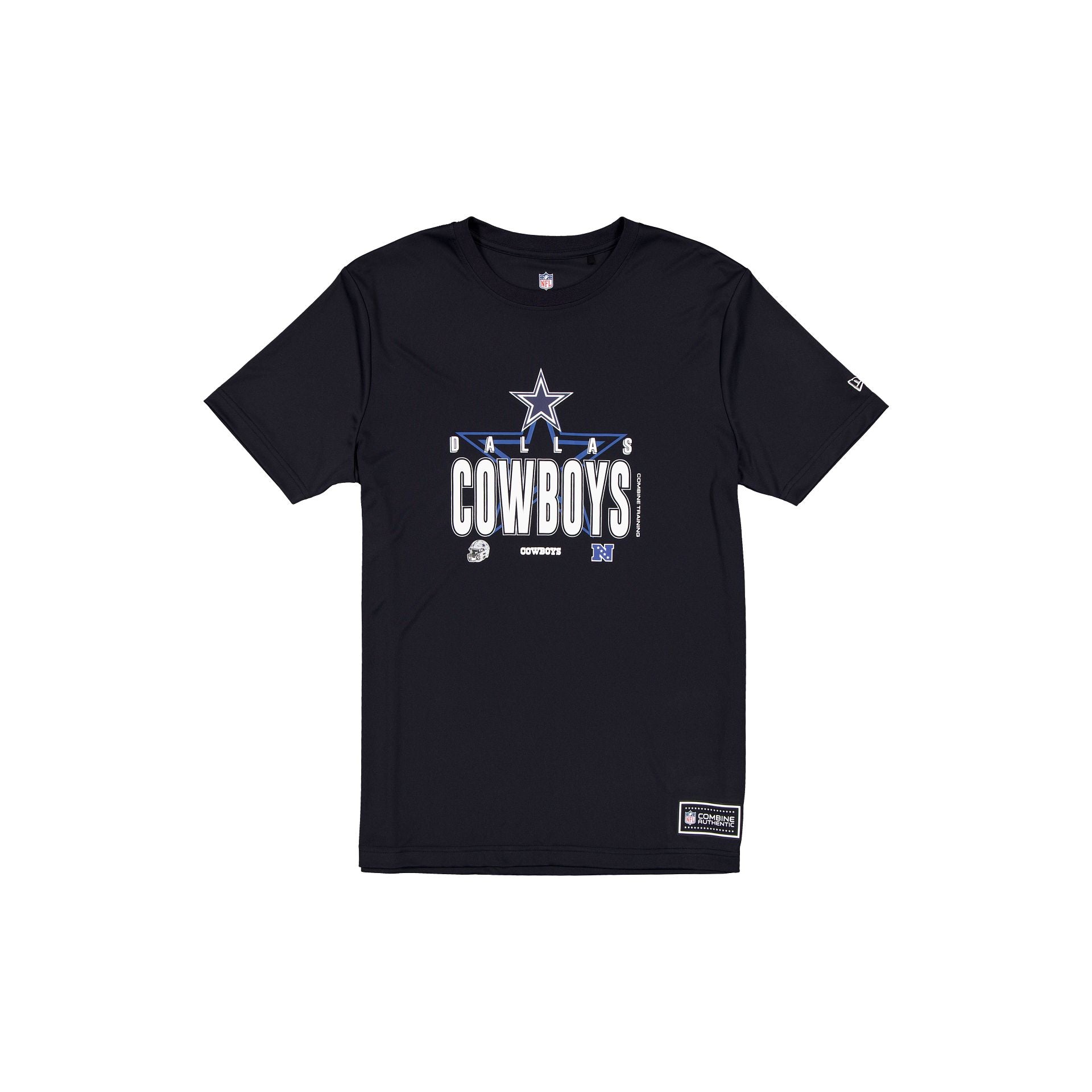 The Dallas Cowboys 2025 Training T-Shirt features a screen-printed Cowboys graphic at the chest with a heat sealed NFL Combine Authentic jock tag at the hem.