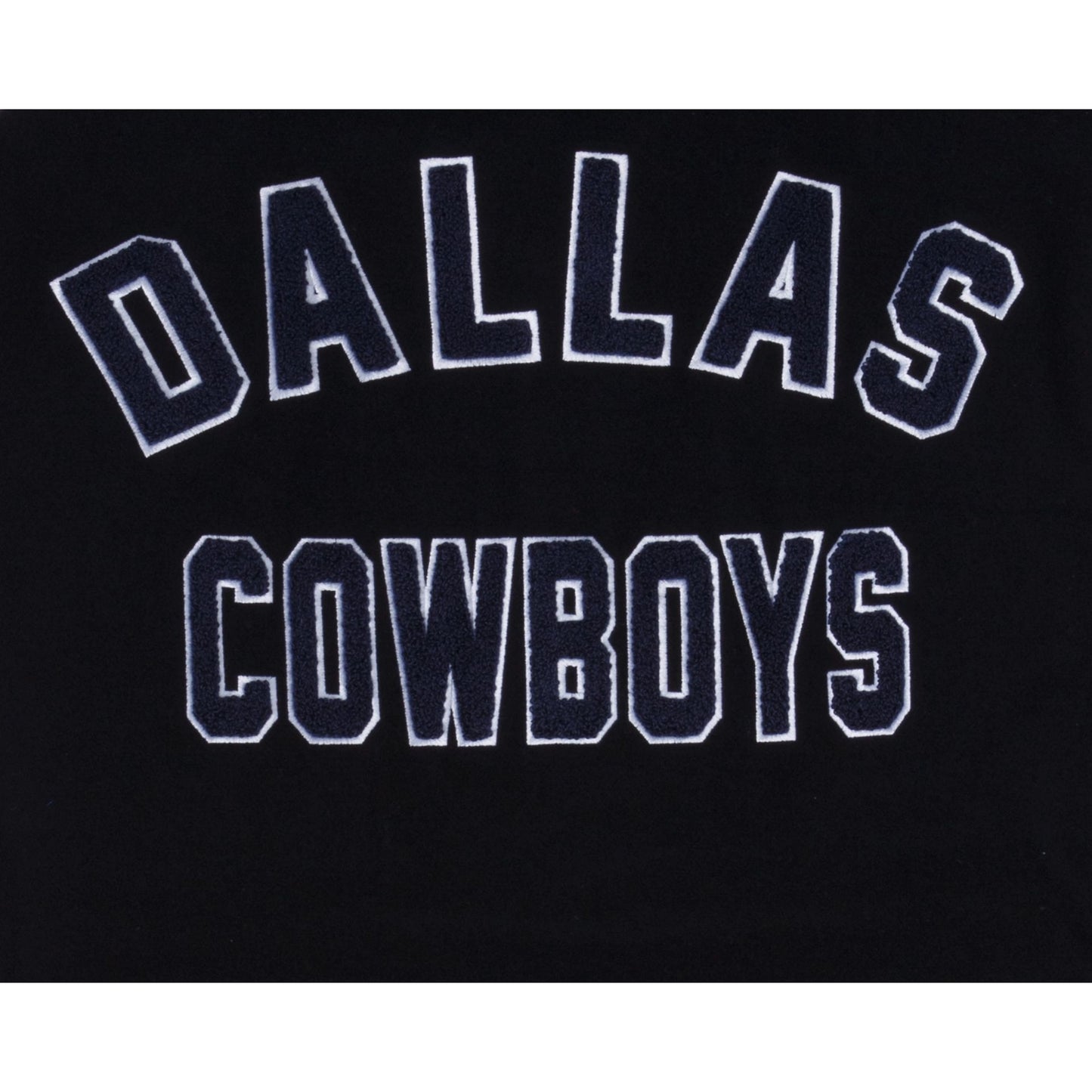 The Dallas Cowboys 3rd Down Jacket features an embroidered Cowboys logo and conference patch with a team wordmark at the front and a chenille team name at the rear. Additional details include pebbled sleeves and a snap button closure.
