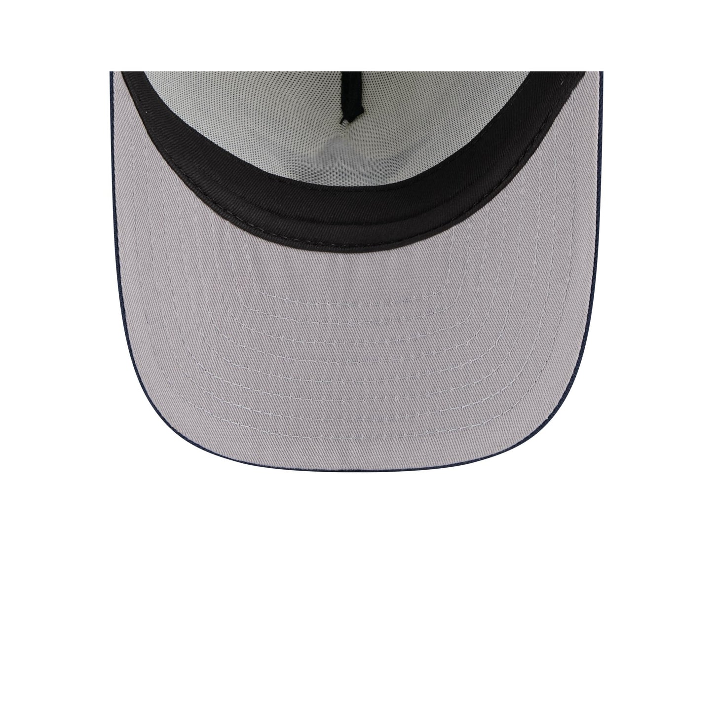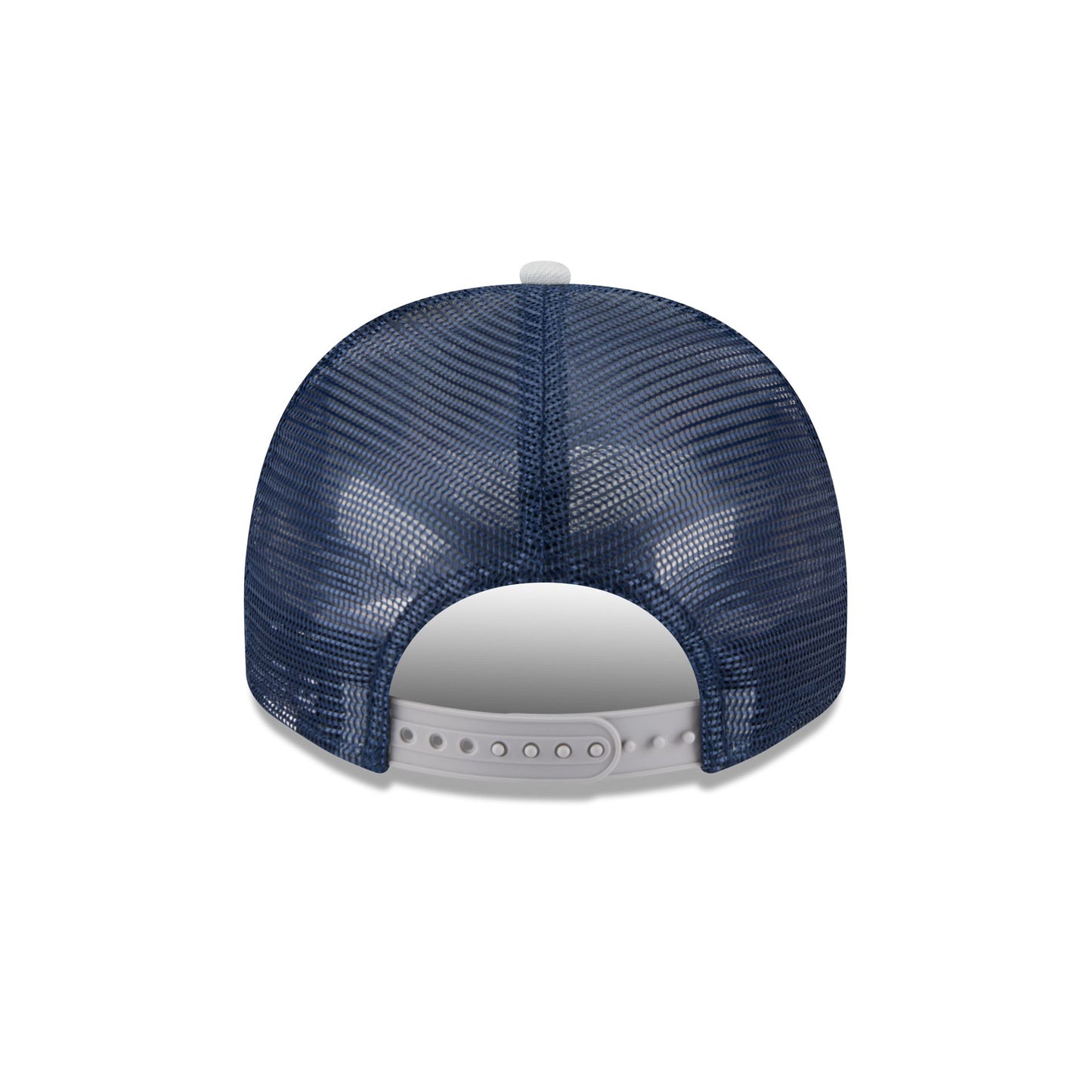 The Dallas Cowboys Banner 9FIFTY A-Frame Trucker features a embroidered Cowboys logo at the front panels against a screen-printed stripe at the front panels. Additional details include a snapback closure at a mesh rear and a gray undervisor.