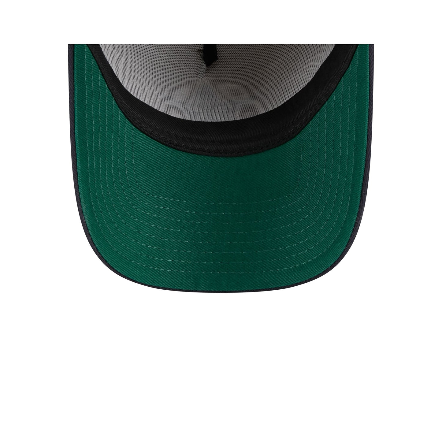 The Dallas Cowboys Beige Khaki 9FORTY A-Frame Snapback features an embroidered Cowboys Cooperstown logo at the front panels with a 50th Anniversary patch at the right-wear side, a snapback closure at the rear, and a green undervisor.