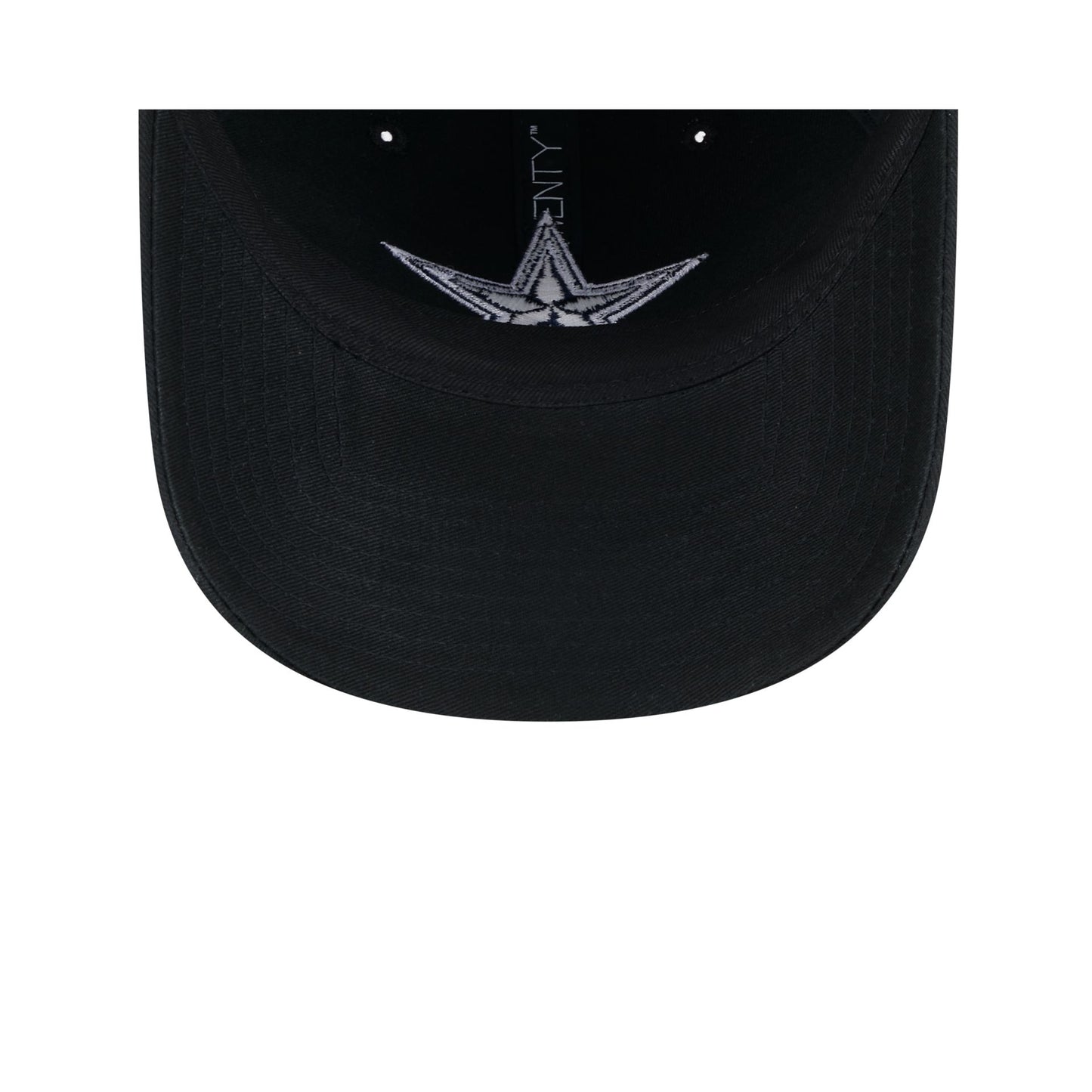 The Dallas Cowboys Black 9TWENTY Adjustable Cap features an embroidered Cowboys logo at the front panels with a matching woven team logo tag at the adjustable D-Ring closure at the rear.