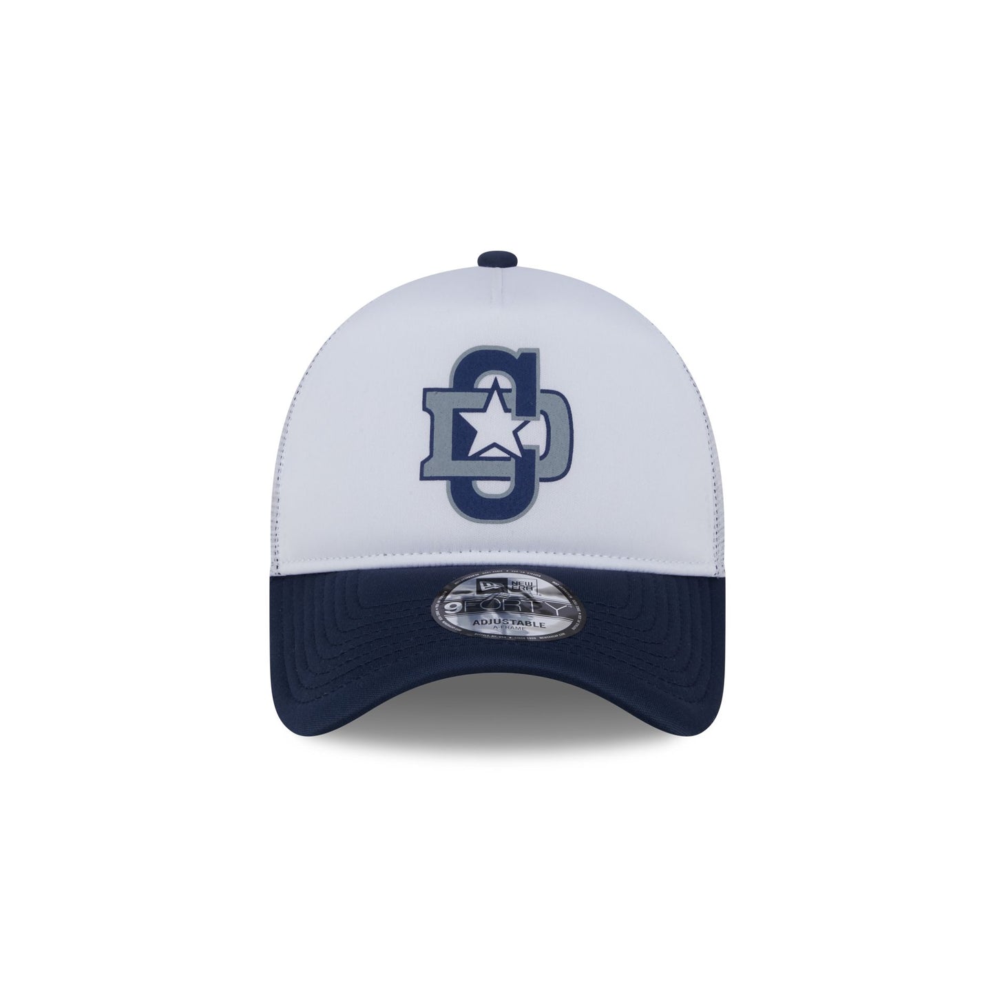 The Dallas Cowboys City Originals 9FORTY A-Frame Snapback features an embroidered throwback Cowboys logo at the front panels with an alternate team logo at the right-wear side. Additional details include a snapback closure at the rear and a navy undervisor.