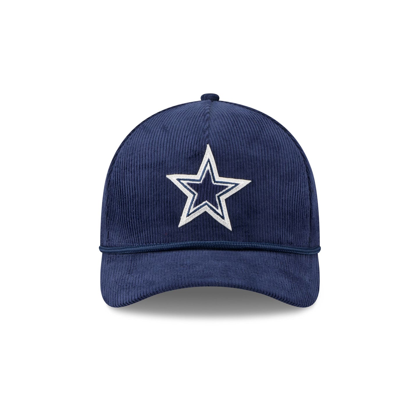 The Dallas Cowboys Corduroy 9FORTY M-Crown A-Frame Snapback features an embroidered Cowboys logo at the front panels with a corduroy fabrication throughout and a rope at the visor. Additional details include a snapback closure at the rear and a gray undervisor.