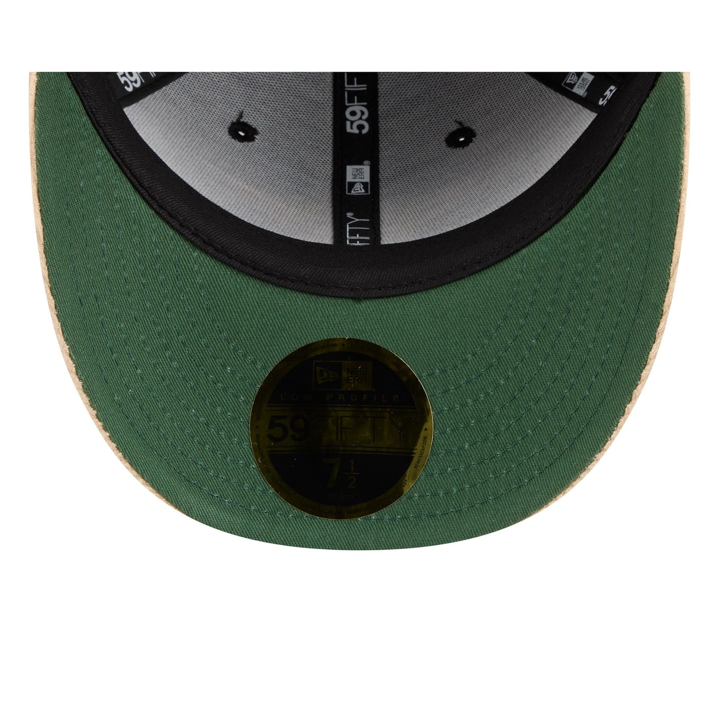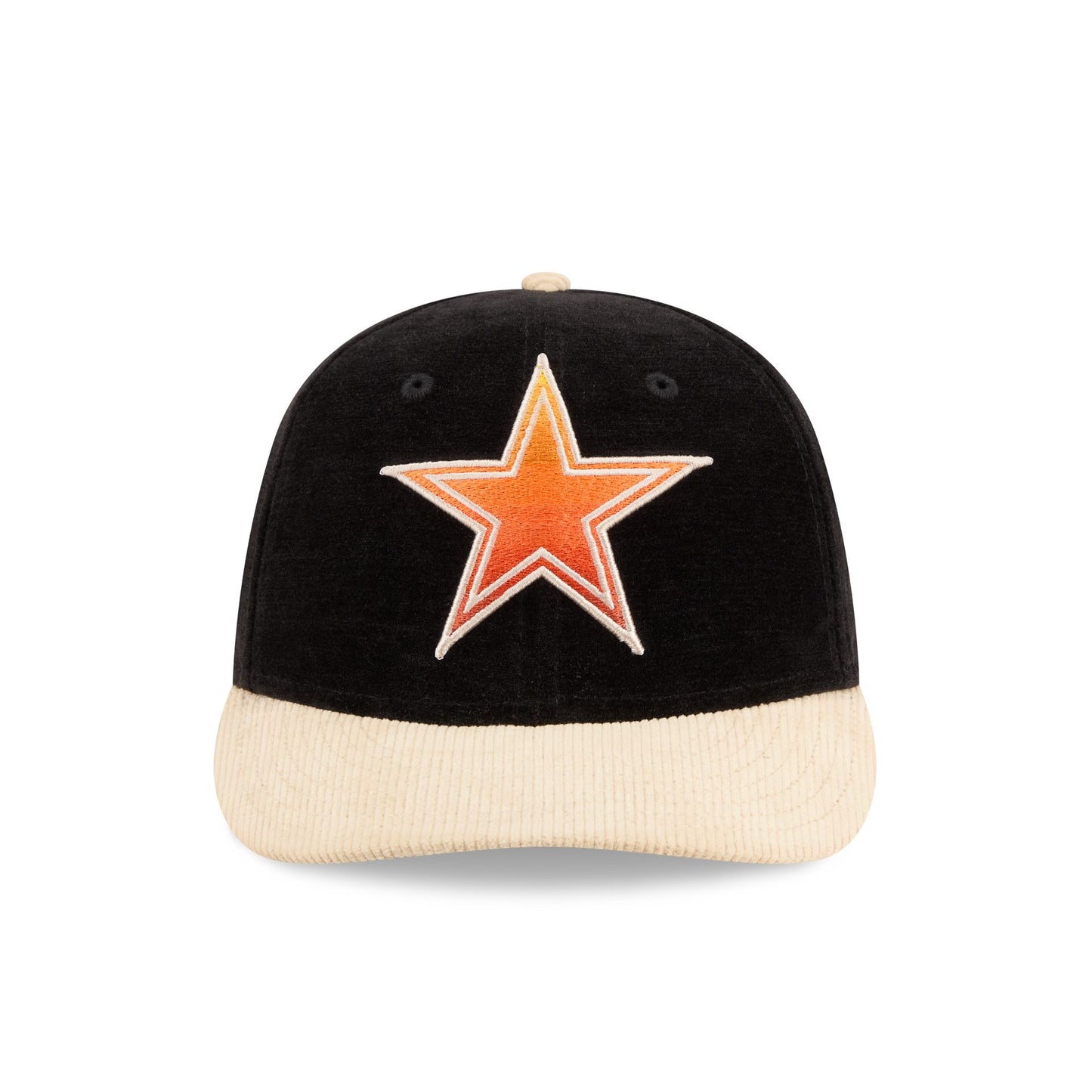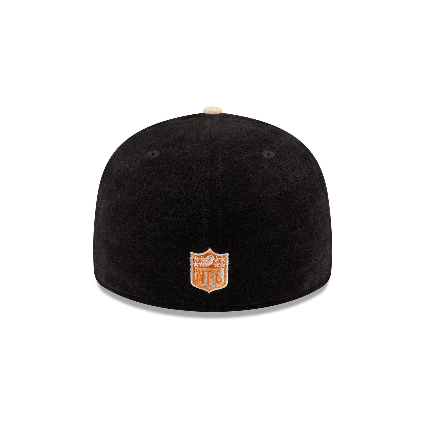 The Dallas Cowboys Fall Velvet Low Profile 59FIFTY Fitted Cap features an embroidered Cowboys fall gradient logo at the front panels against a velvet fabrication throughout. Additional details include an antique brass leather stitch down city plate at the right-wear side, a matching NFL Shield logo at the rear, and a green undervisor.