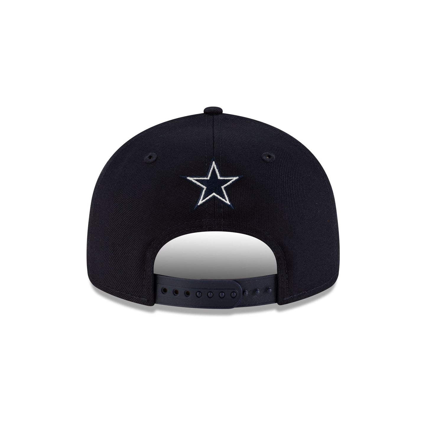 The Dallas Cowboys Fear of God Essentials Retro Crown 9FIFTY Snapback features an embroidered Cowboys Essentials wordmark at the front panels with a New Era script at the left-wear side and a team logo above an adjustable snapback closure at the rear.
