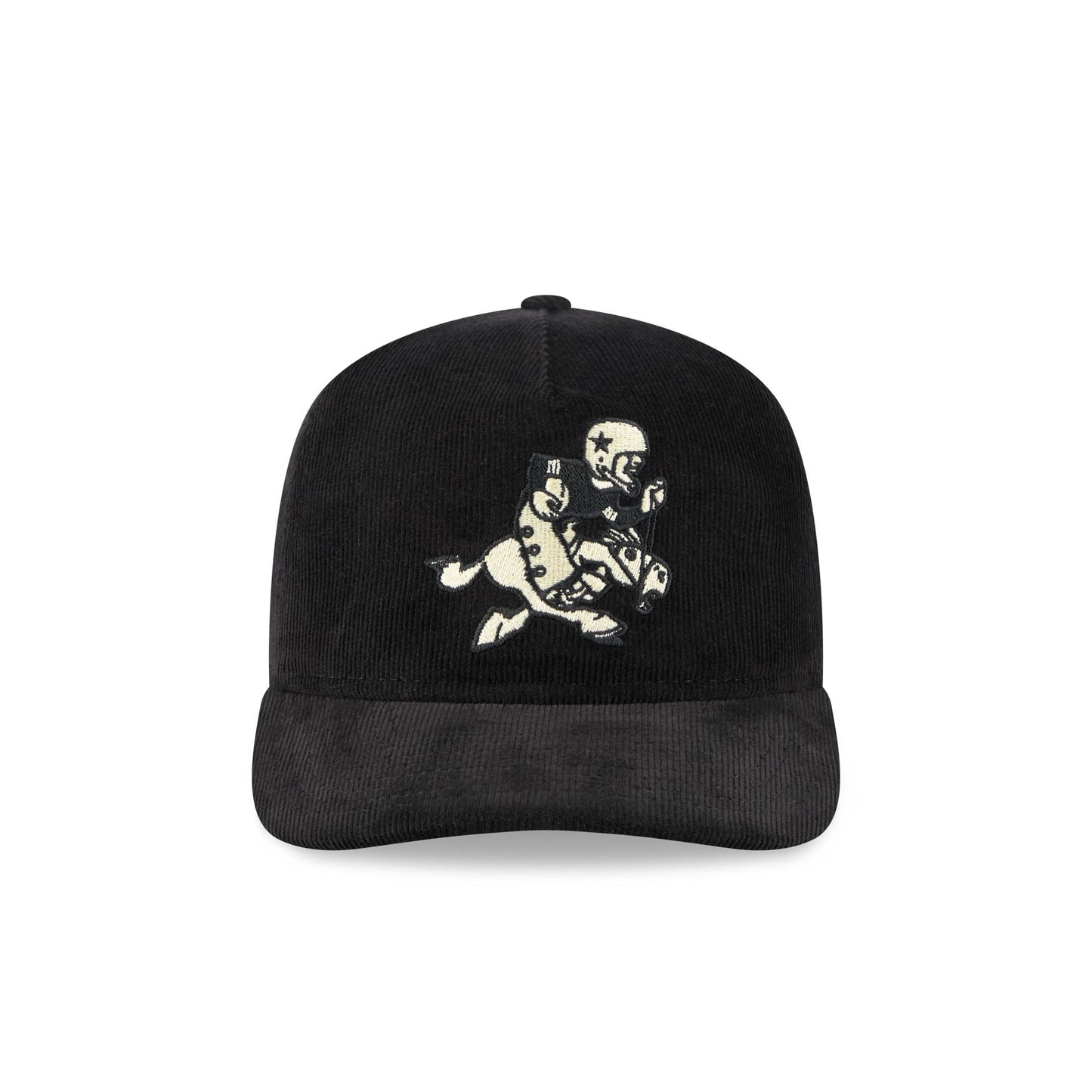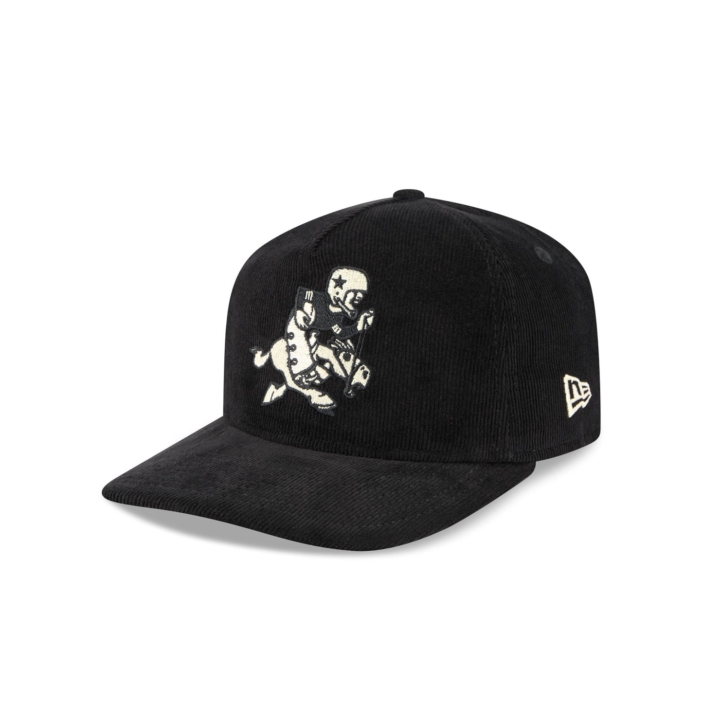 The Dallas Cowboys Nostalgic Black Corduroy 19TWENTY Adjustable Cap features an embroidered Cowboys Historic logo at the front panel with a snapback closure at the rear and a gray undervisor.