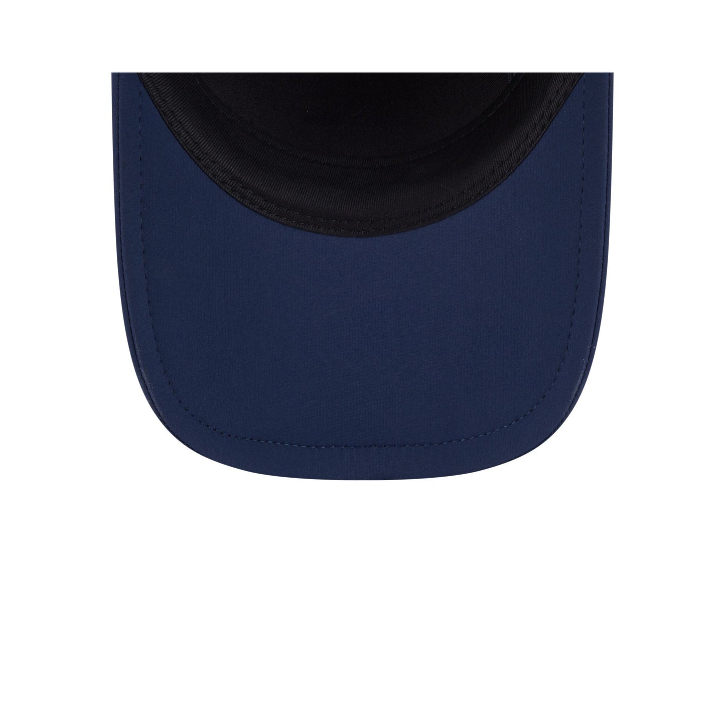 The Dallas Cowboys Poly Runner Cap features a heat sealed Cowboys logo at the front panels with mesh side panels. Additional details include a silicone patch above an adjustable drawstring closure at the rear.