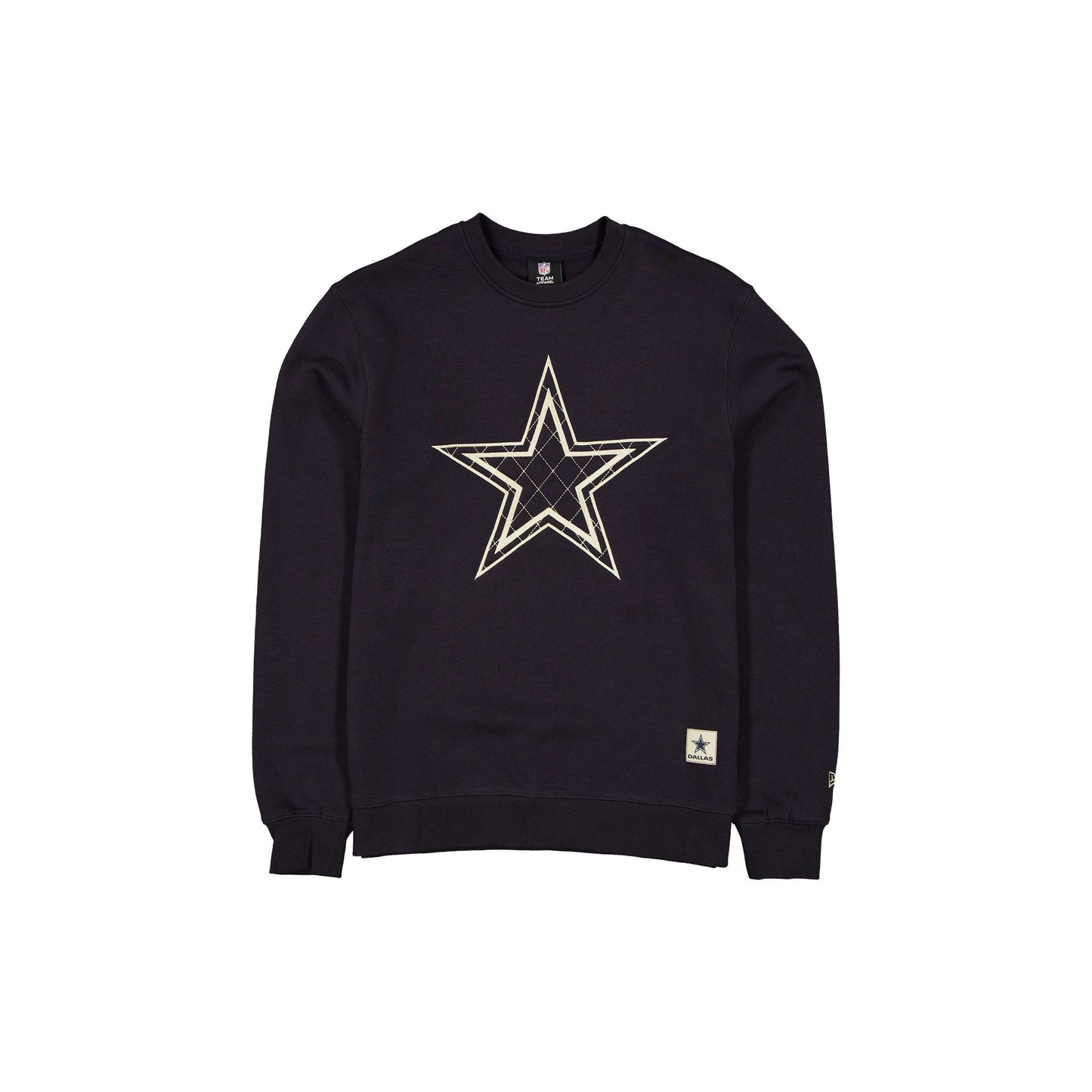 The Dallas Cowboys Quilted Crewneck features a diamond quilt embroidered Cowboys logo at the chest with a matching team jock tag at the hem.