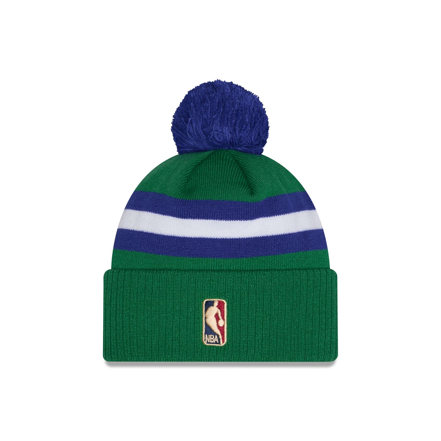 The Dallas Mavericks 2025 Classic Edition Pom Knit features an embroidered Mavericks logo at the front cuff with an NBA Logoman at the rear and a one-time removable pom.