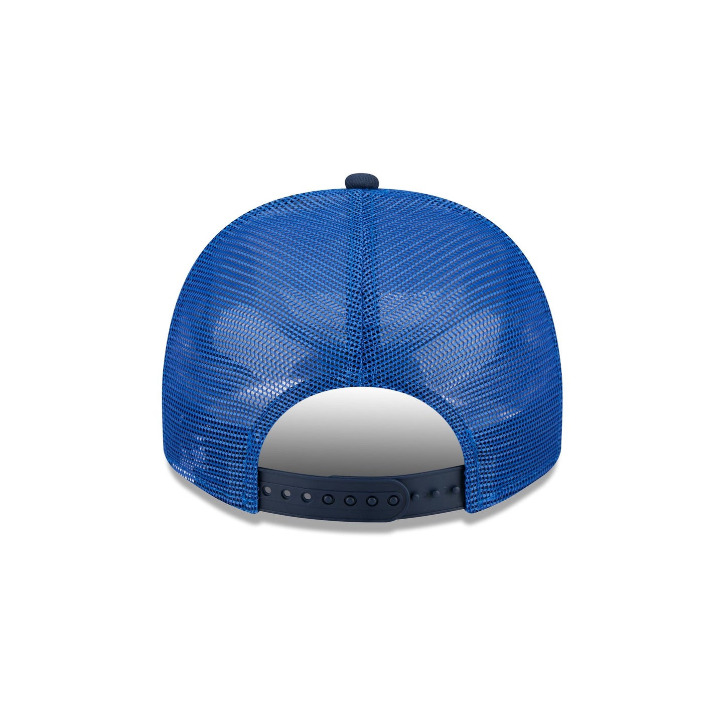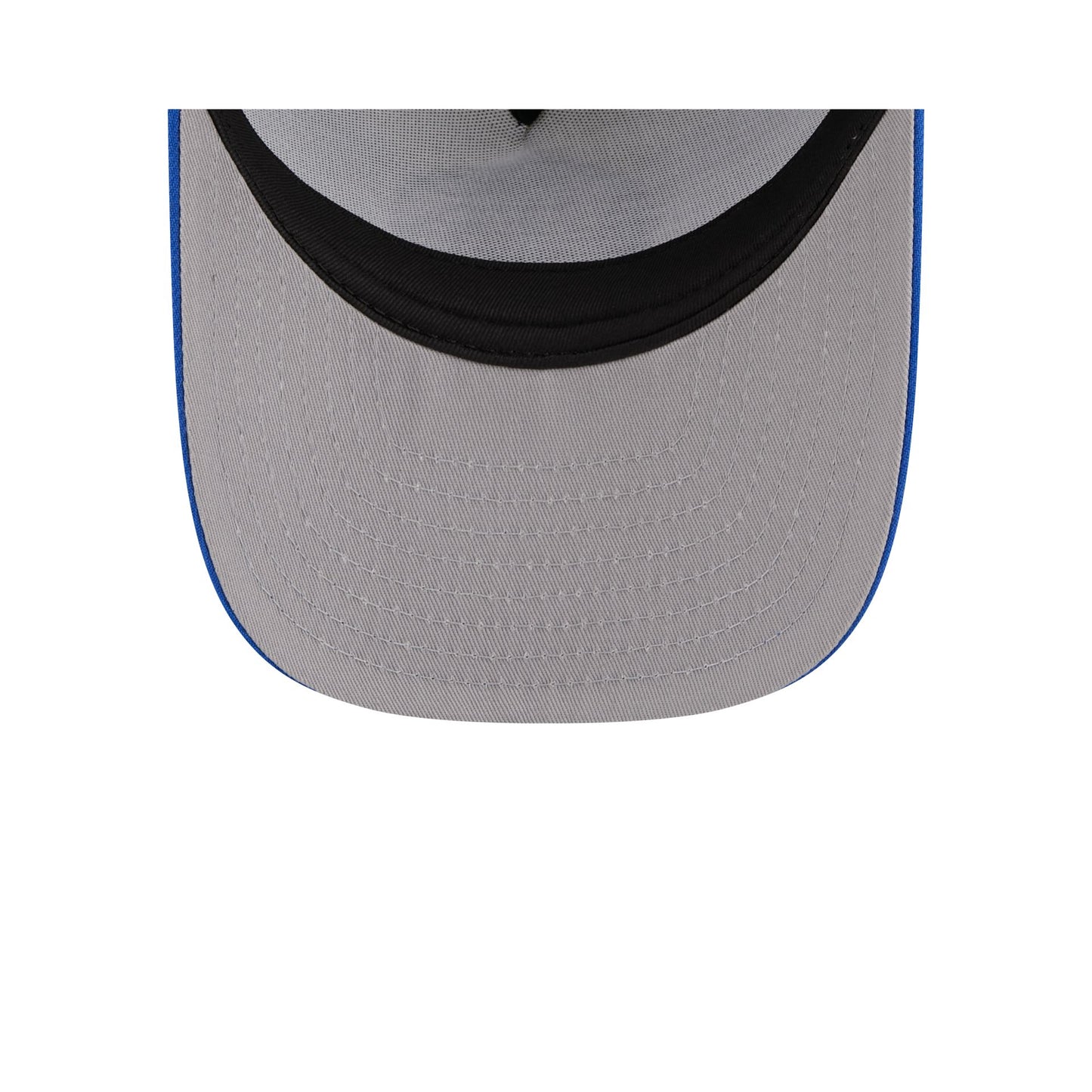 The Dallas Mavericks Banner 9FIFTY A-Frame Trucker features a embroidered Mavericks logo at the front panels against a screen-printed stripe at the front panels. Additional details include a snapback closure at a mesh rear and a gray undervisor.