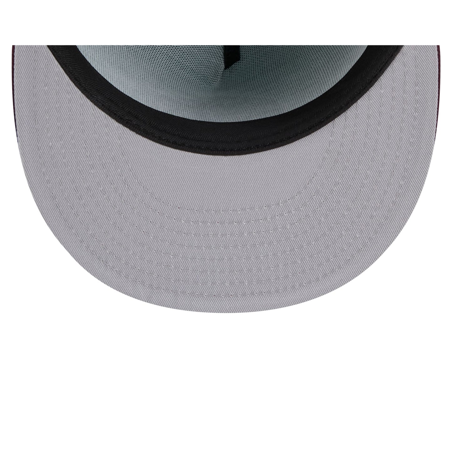 The Dallas Mavericks Beach Kiss Blue 59FIFTY A-Frame Fitted Cap features an embroidered Mavericks logo at the front panels with a matching NBA Logoman at the rear and a gray undervisor.