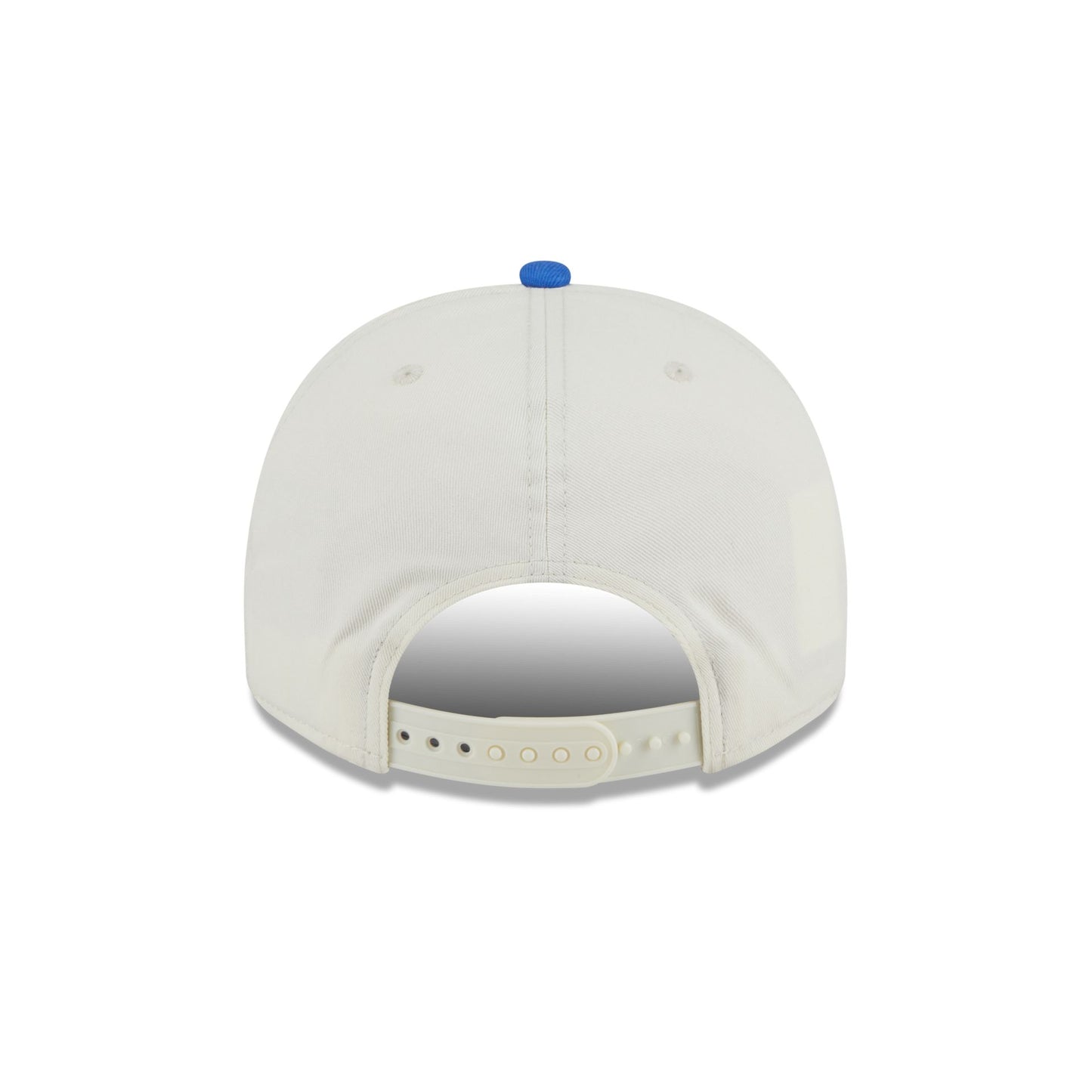 The Dallas Mavericks Chainstitch 9FIFTY A-Frame Snapback features a chainstitch Mavericks logo and script wordmark at the front panels with a snapback closure at the rear and a gray undervisor.