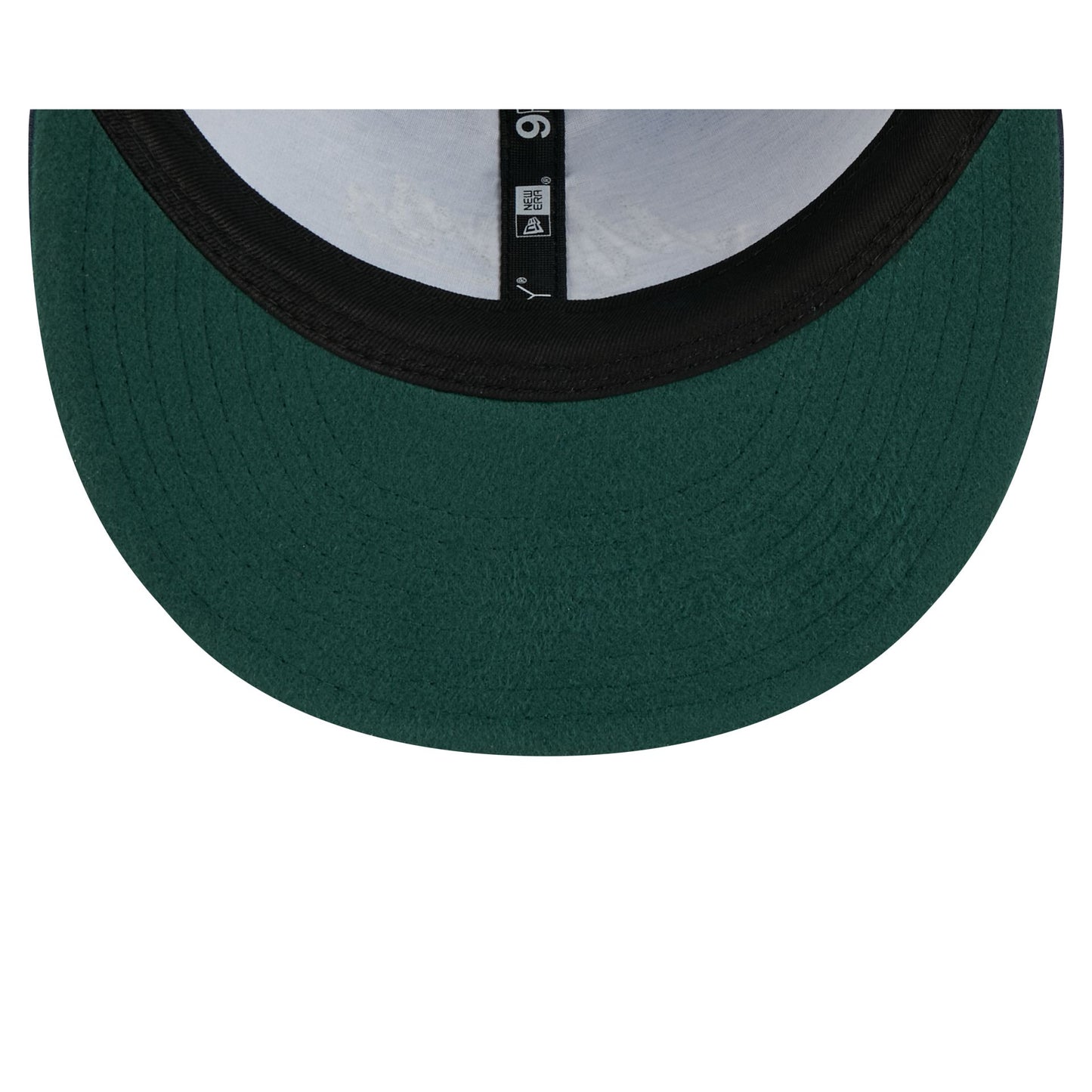 The Dallas Mavericks Chainstitch Script Retro Crown 9FIFTY Snapback features a chainstitch embroidered Mavericks script at the front panels with a matching team logo at the right-wear side, an adjustable snapback closure at the rear, and a green Melton wool undervisor.