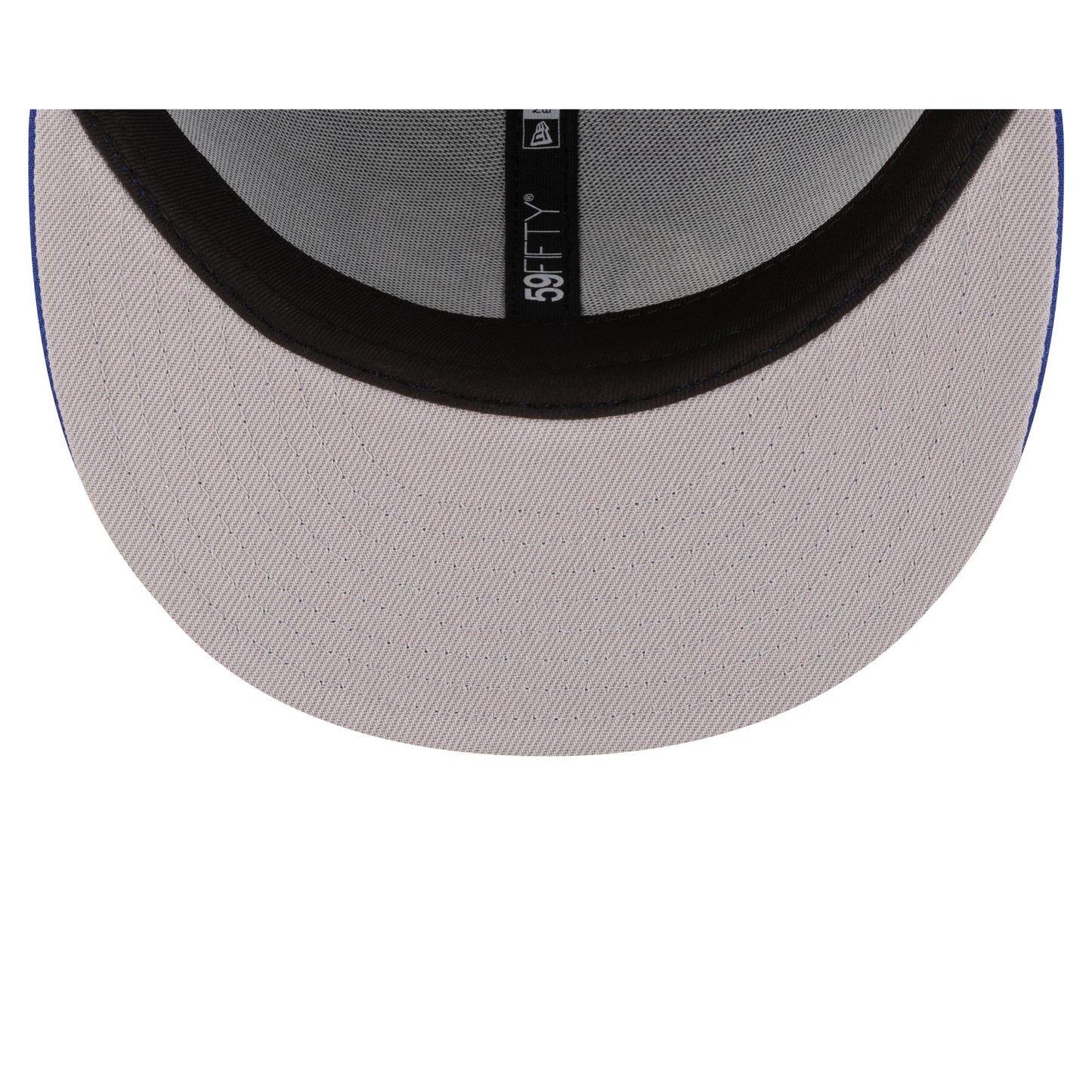 The Dallas Mavericks Hardwood Classics 80s Pinwheel 59FIFTY Fitted Cap features an embroidered 80s Mavericks logo at the front panels with an NBA Logoman at the rear, a gray undervisor, and multicolored panels arranged in a pinwheel design.