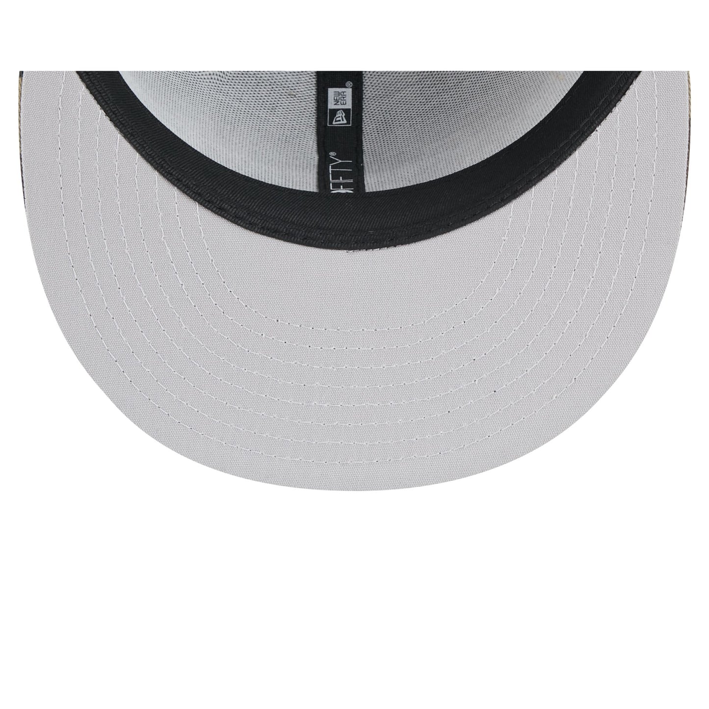The Dallas Stars Camo 9FIFTY Trucker features an embroidered Stars logo at the front panels with a team tag on a snapback closure at a mesh rear and a gray undervisor.